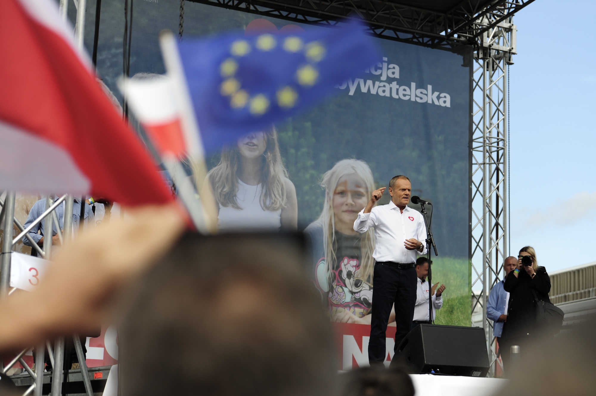 唐纳德·图斯克在10月1日的华沙集会上发表讲话。