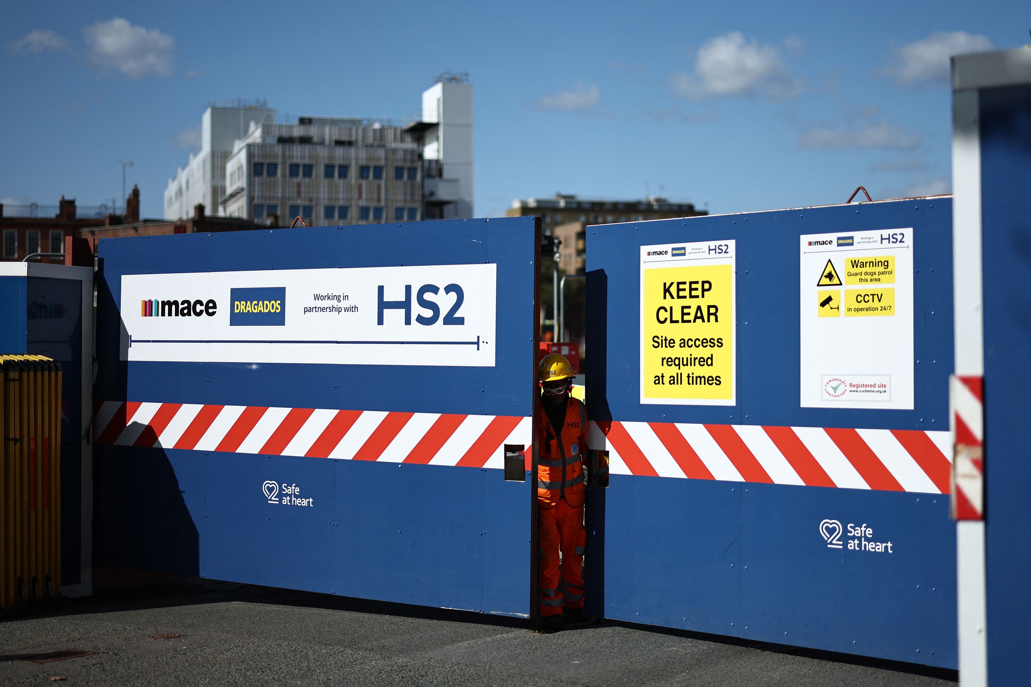 9月29日,位于伦敦市中心的HS2高速2号铁路项目尤斯顿站建设工地。摄影师:亨利·尼科尔斯/法新社/盖蒂图片社相反,苏纳克揭示了一个“新尤斯顿发展区”,暗示该地区的重建现在将由私营部门资助。