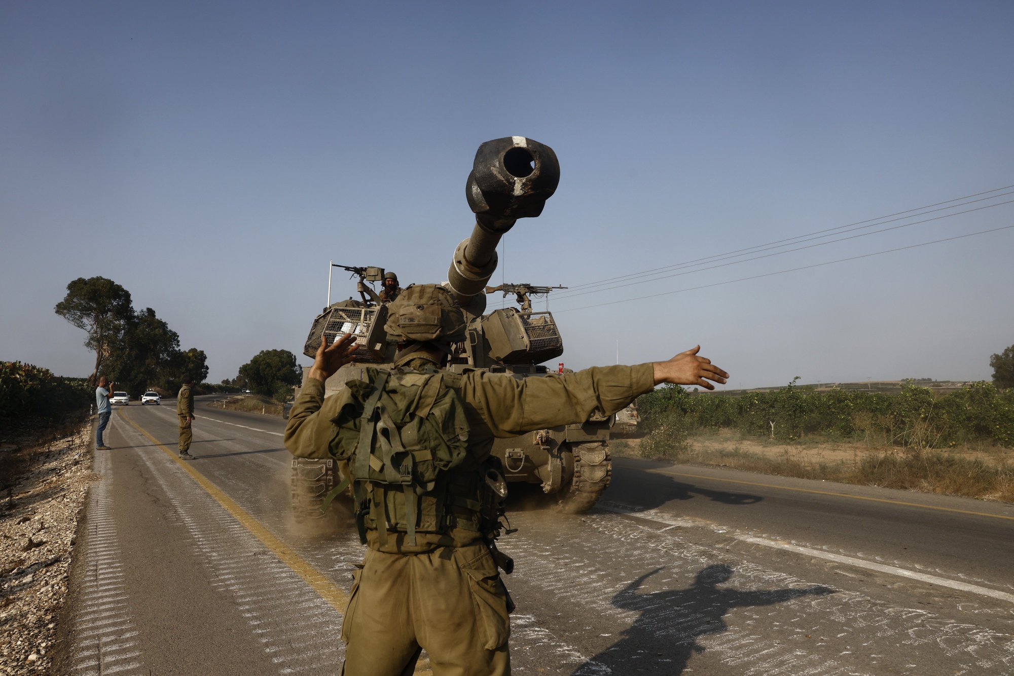 以色列军队的自行火炮移向以色列Sderot边境,日期为10月8日。