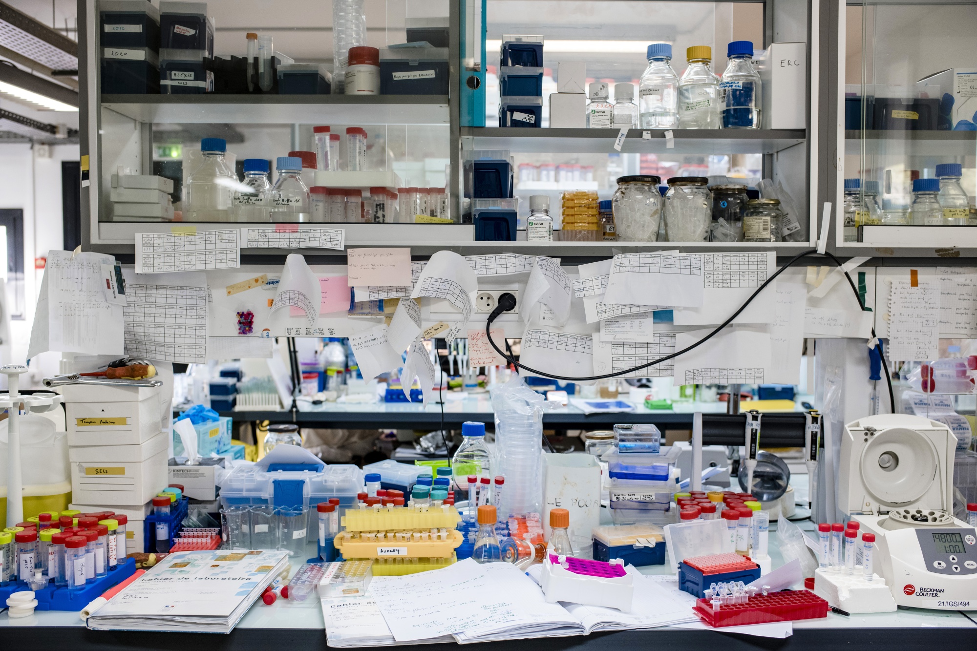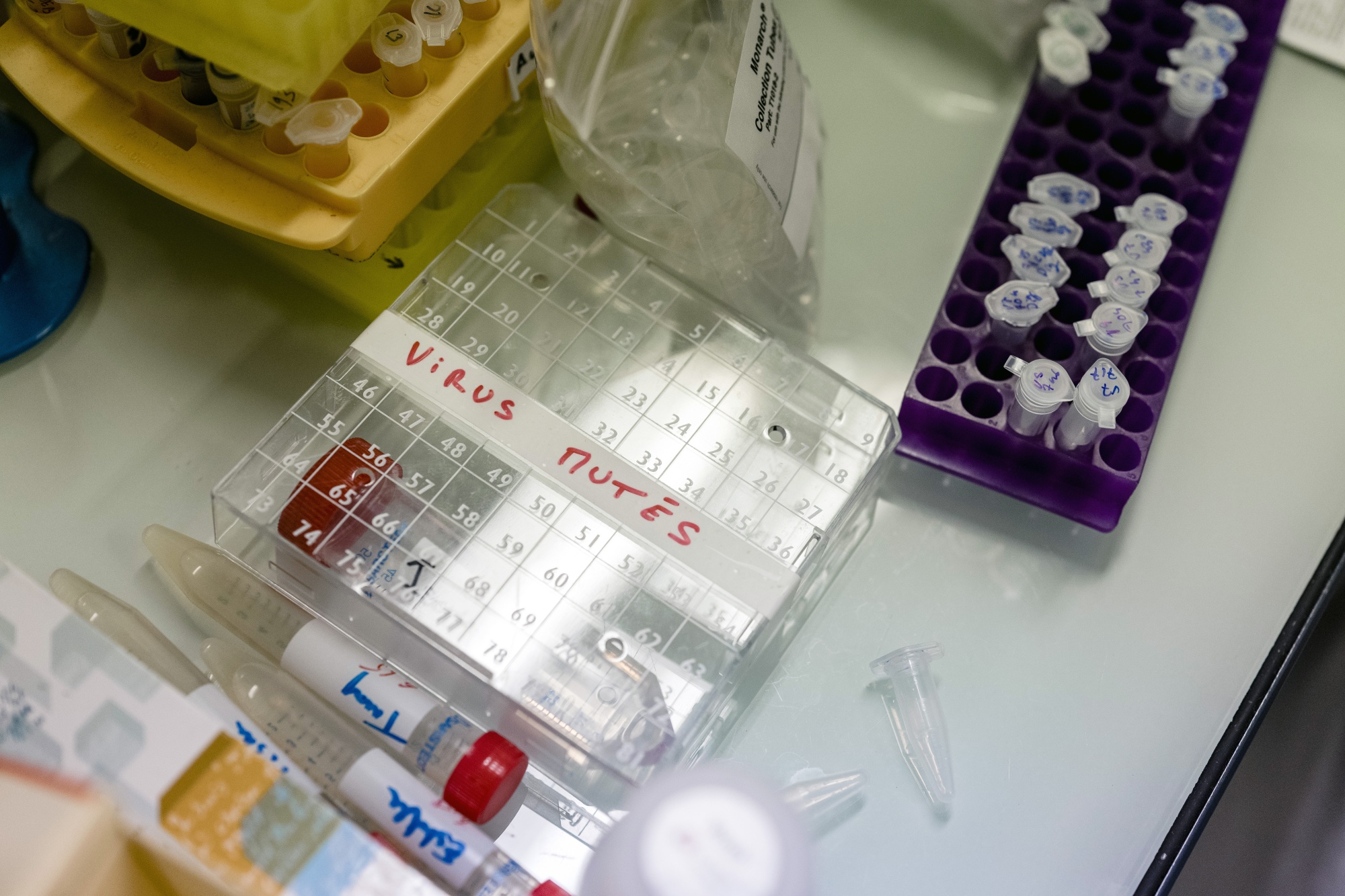 塑料瓶里装着土壤样本,玻璃瓶里装着不起眼的棕色液体,克拉维耶的办公室里摆放着一根毛绒犀牛脊椎骨和他的团队在2019年西伯利亚探险中发现的猛犸象象牙残骸。与此同时,实验室里的昂贵设备和生物安全室表明这绝非一项轻浮的消遣。