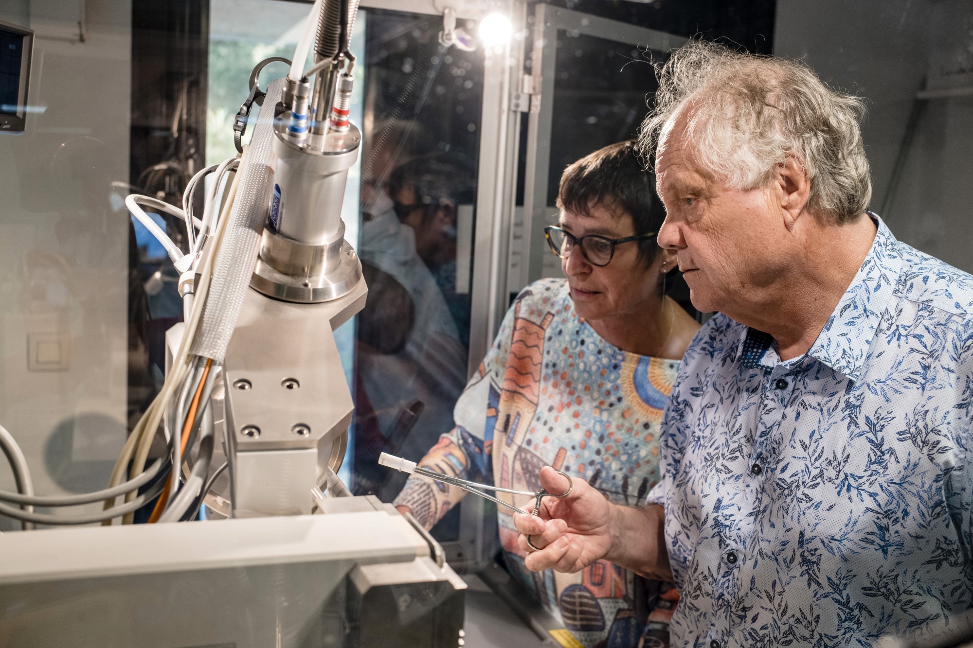 Claverie和Abergel正在使用X射线衍射设备来确定病毒蛋白的三维结构。摄影师:Jeremy Suyker/BloombergClaverie在2014年首次展示了可以从西伯利亚永久冻土中提取“活”病毒并成功复活的事实。出于安全考虑,他的研究仅关注能够感染变形虫的病毒,这些病毒与人类物种相距甚远,避免了任何意外污染的风险。但他认为,这些发现所暗示的公共卫生威胁的规模被低估或错误地被认为是罕见的。