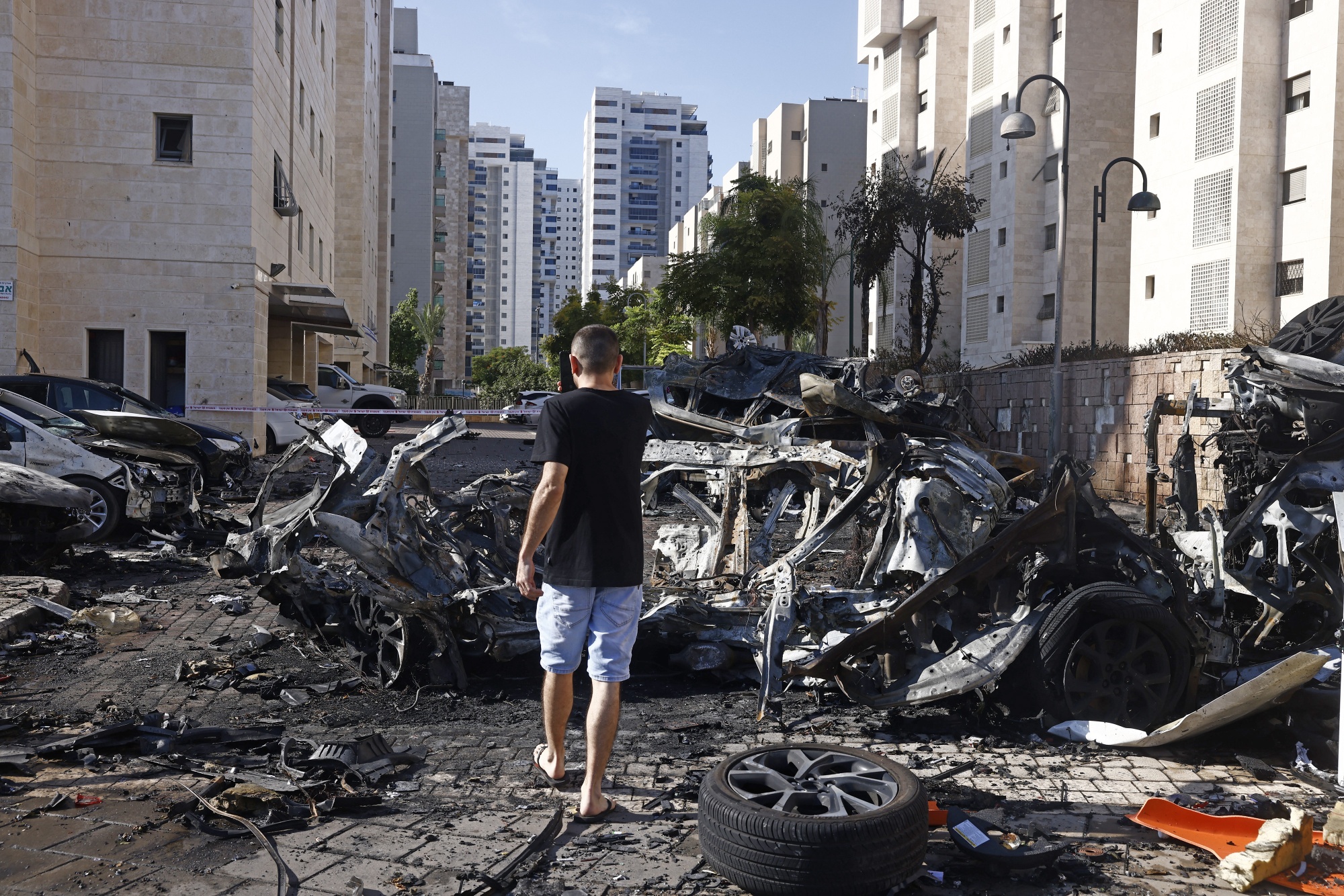 在以色列阿什克隆遭受火箭袭击的汽车。