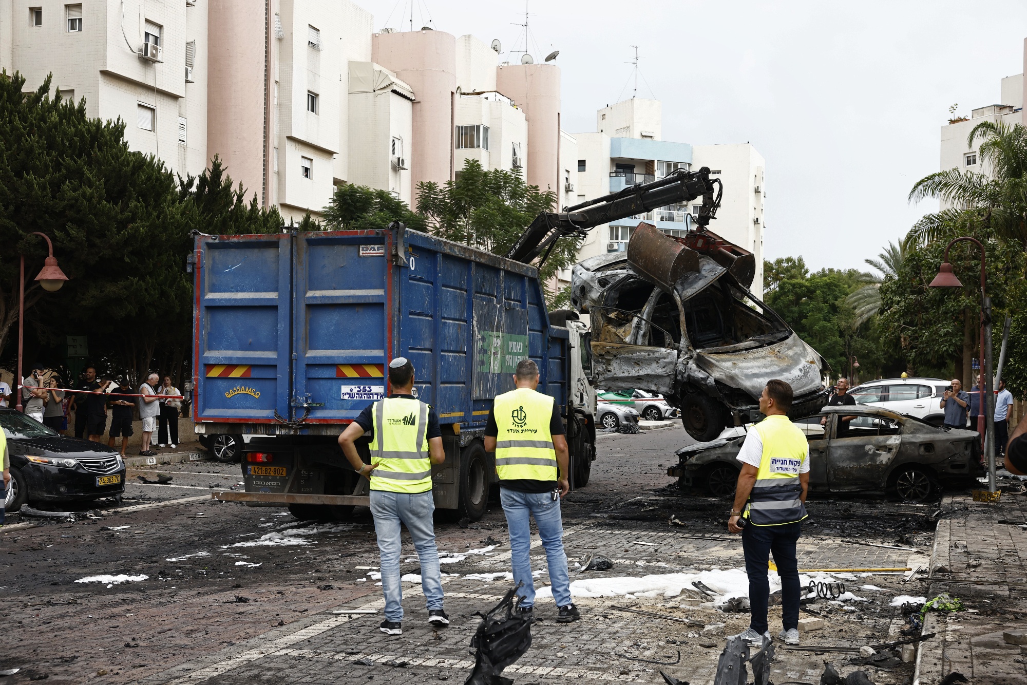 以色列紧急救援人员清理巴勒斯坦激进分子导致的导弹袭击造成的废墟和被摧毁的汽车,地点在以色列的阿什杜德,时间是10月9日。摄影师:Kobi Wolf/Bloomberg拜登表示,他在周二早些时候与以色列总理本杰明·内塔尼亚胡的电话中表示,如果在美国发生类似袭击,“我们的回应将是迅速、果断和压倒性的”,同时遵守法治原则。