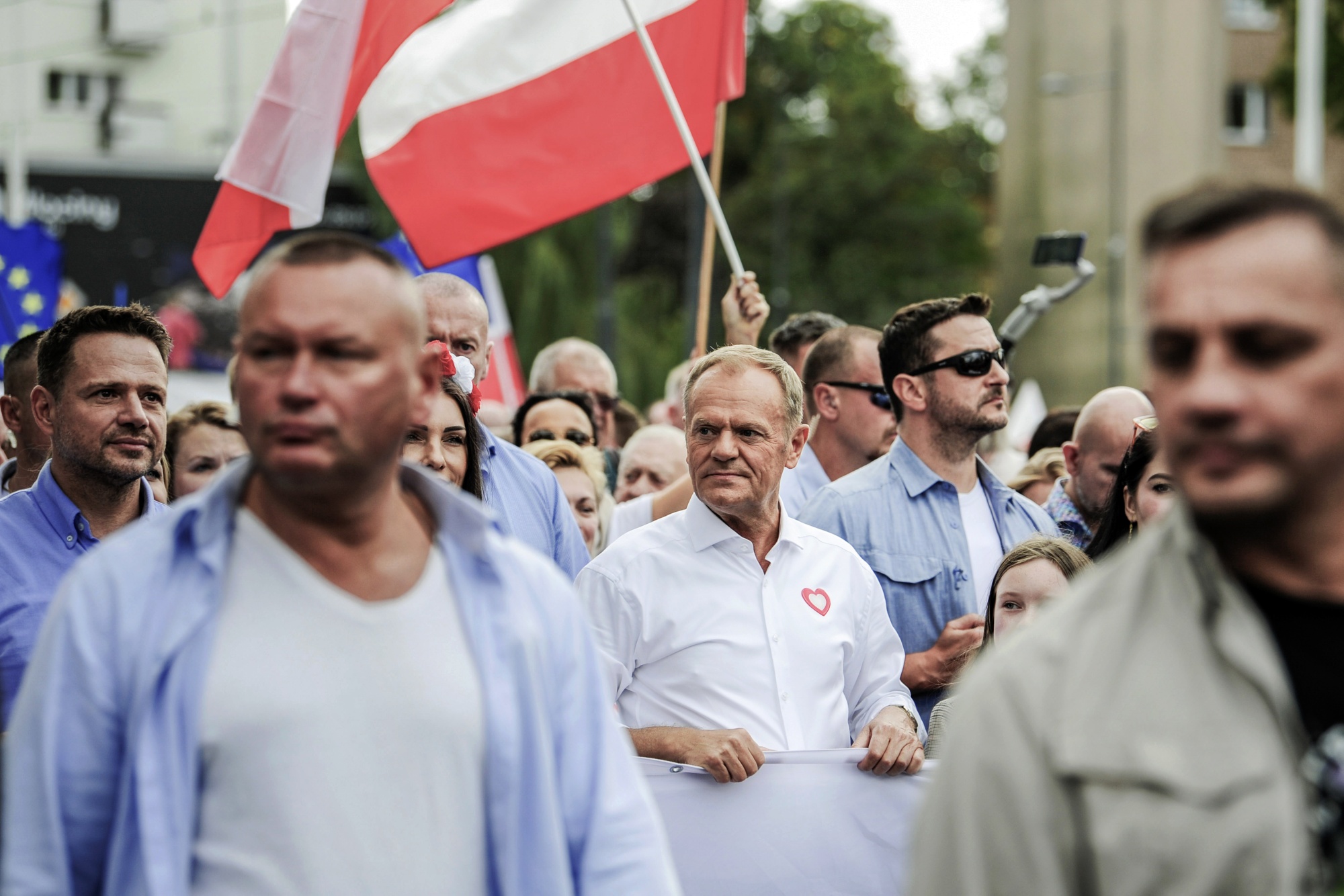 唐纳德·图斯克和反对派支持者在华沙的集会上,时间是10月1日摄影师:达米安·莱曼斯基/彭博社反对派公民平台党由唐纳德·图斯克领导,他是前波兰总理,后来在布鲁塞尔担任两届欧洲理事会主席,然后回国挑战他的宿敌雅罗斯瓦夫·卡钦斯基,法律和正义党的领袖,也是波兰最有权势的政治人物。