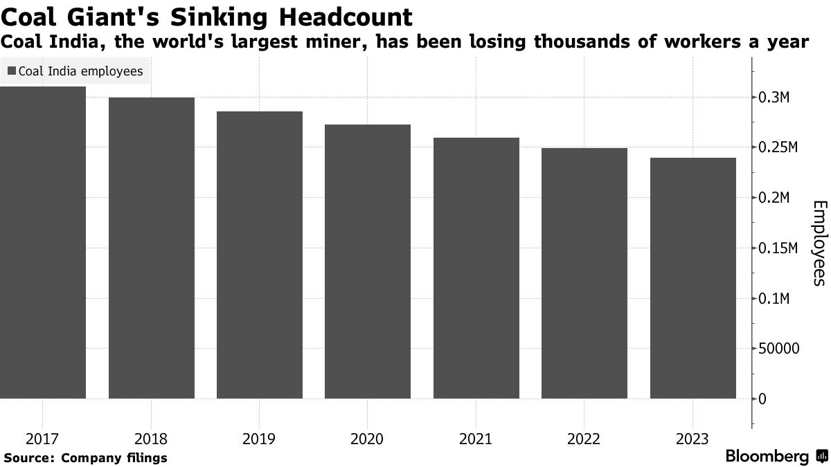 印度煤炭有限公司,这家生产比任何其他公司都多的煤炭的国有矿业公司,可能会面临来自裁员的最大企业影响,根据报告,到2050年可能会裁减近74,000名工人。