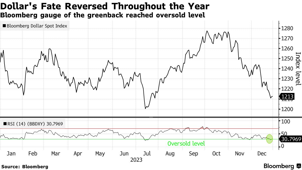美元在疫情爆发以来表现最差的一年结束,华尔街加大了对美联储将于2024年降息的押注。