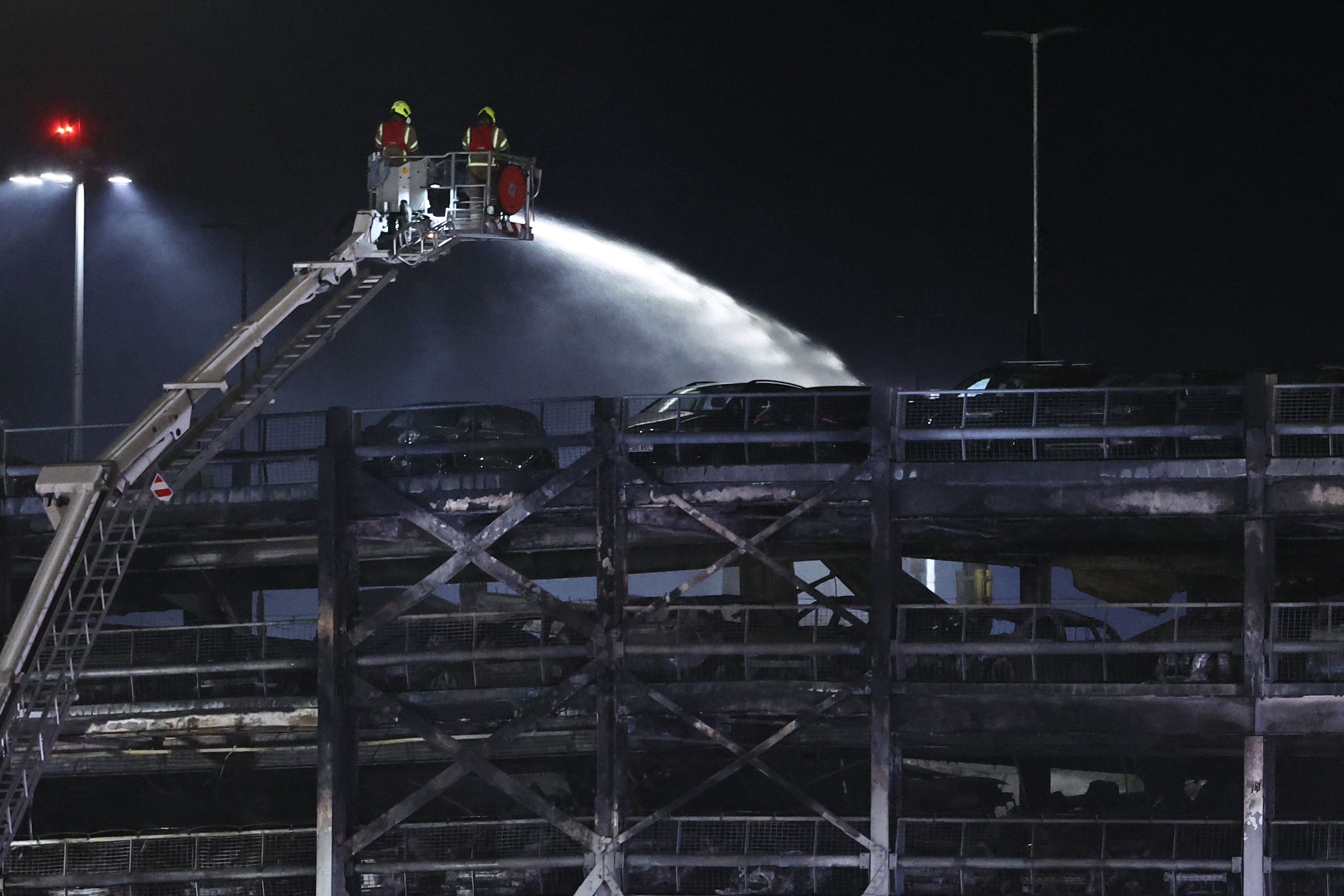 消防员在10月11日的卢顿机场扑灭大火。