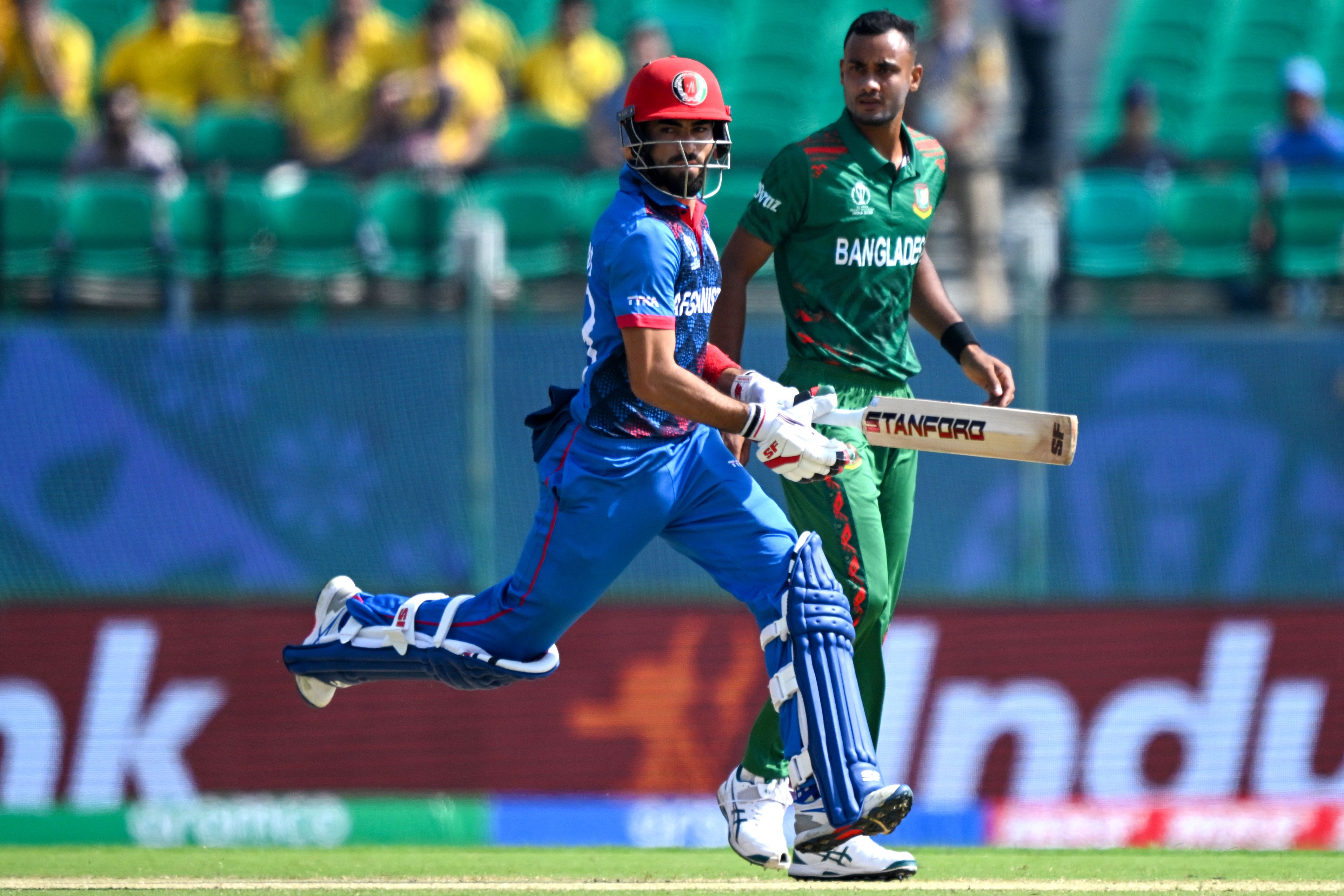 阿富汗的易卜拉欣·扎德兰在2023年10月7日对阵孟加拉国的国际板球理事会男子板球世界杯比赛中展现出色。摄影师:Arun Sankar/AFP/Getty Images### 不容乐观的开局