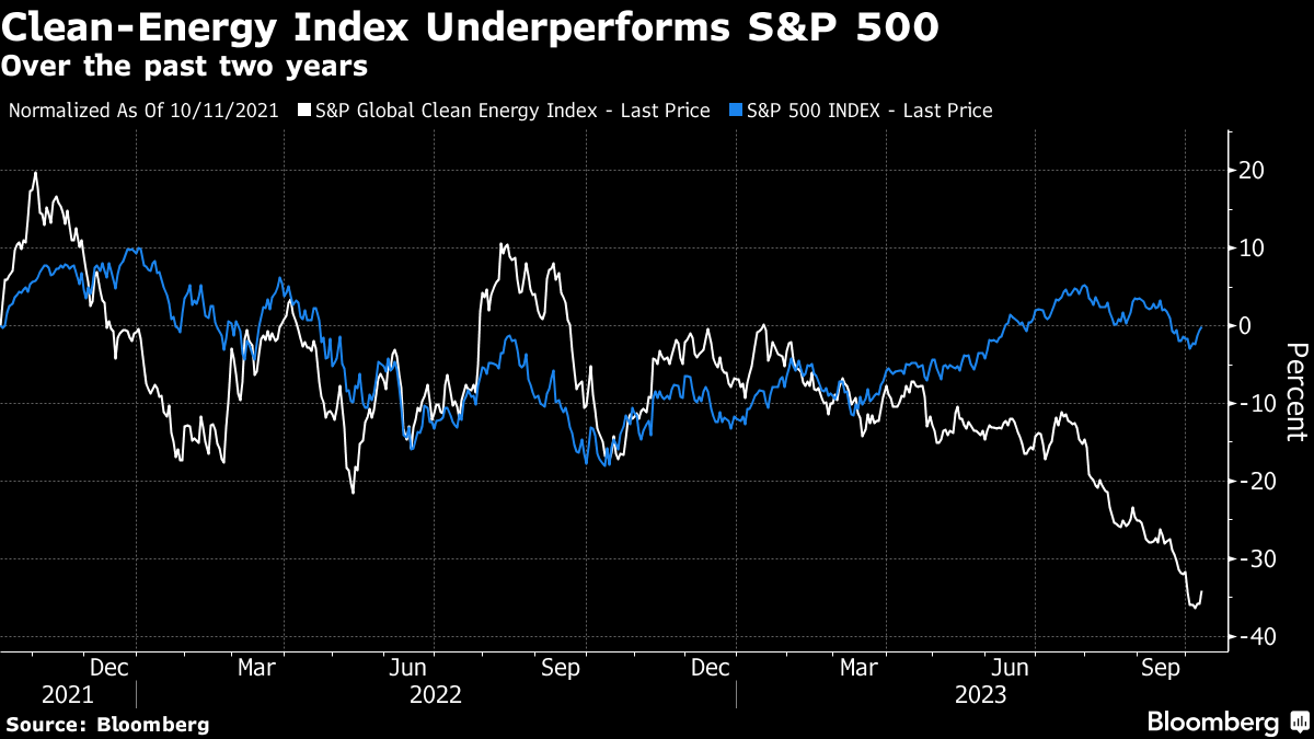 太阳能和风能一直是最大的输家。具有讽刺意味的是,对这些行业的空头押注被美国创纪录的绿色刺激所推动,对冲基金表示这导致通货膨胀和更高的借贷成本,最终使得依赖债务的ESG股票生活更加艰难。