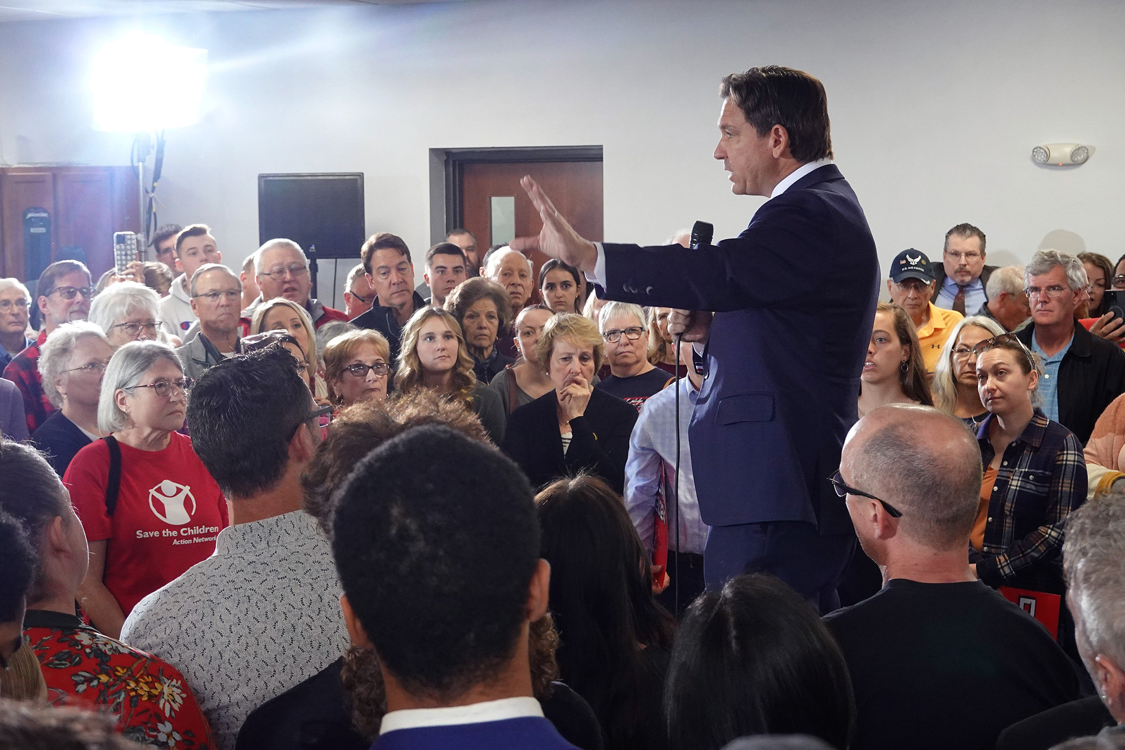 罗恩·德桑提斯在爱荷华州锡达拉皮兹市的竞选活动中,于10月8日。摄影师:斯科特·奥尔森/盖蒂图片社德桑提斯的广告计划于11月中旬开始播出,但竞选活动可以预订广告空间而无需付款,这样可以在没有风险的情况下取消广告。