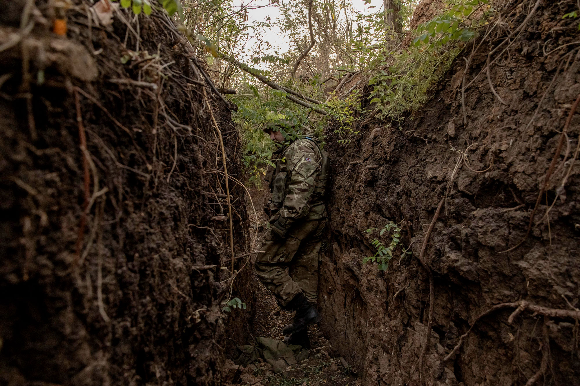 乌克兰士兵在乌克兰Robotyne村附近的前线。
