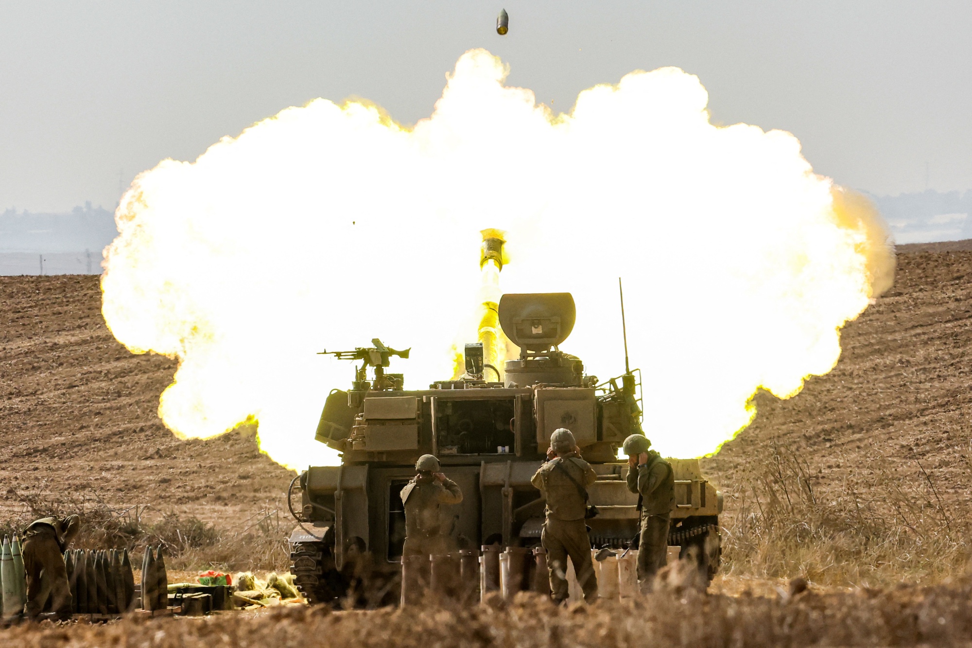 以色列军队的自行火炮在10月11日靠近加沙边境发射炮弹。摄影师:杰克·盖兹/法新社/盖蒂图片社### 布林肯前往以色列,人质命运未卜(晚上9:45)