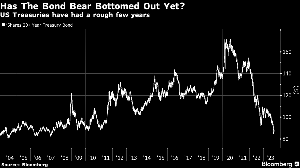 我今天早上快速谷歌了一下“是时候买债券了吗?”和“债券熊市结束了吗?”之类的短语。可以说,在过去的18个月左右,有很多尝试来确定底部的时间点,特别是去年秋天。