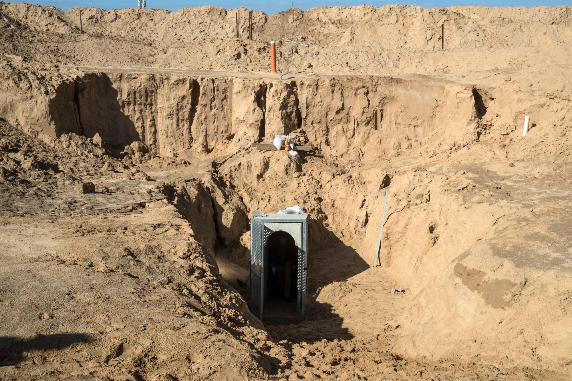 2018年1月,巴勒斯坦隧道从加沙地带延伸至以色列南部,靠近基苏菲姆。摄影师:杰克·盖兹/法新社/盖蒂图片社最初,这个地下网络主要用于从埃及走私货物和武器进入以色列在2005年撤出的狭窄土地。
