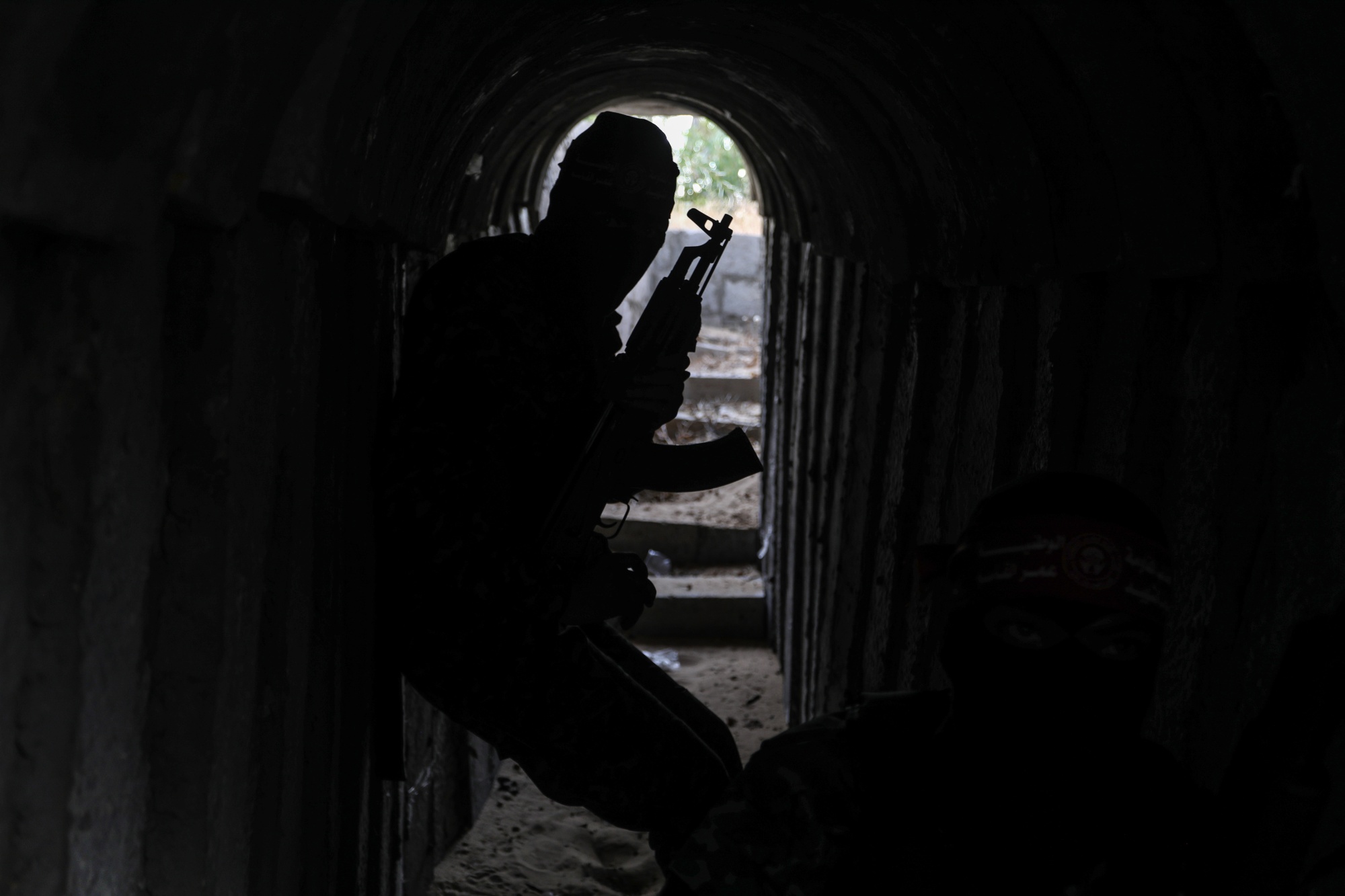 巴勒斯坦解放民主阵线(DFLP)成员在加沙市的一个隧道内,拍摄于5月19日。