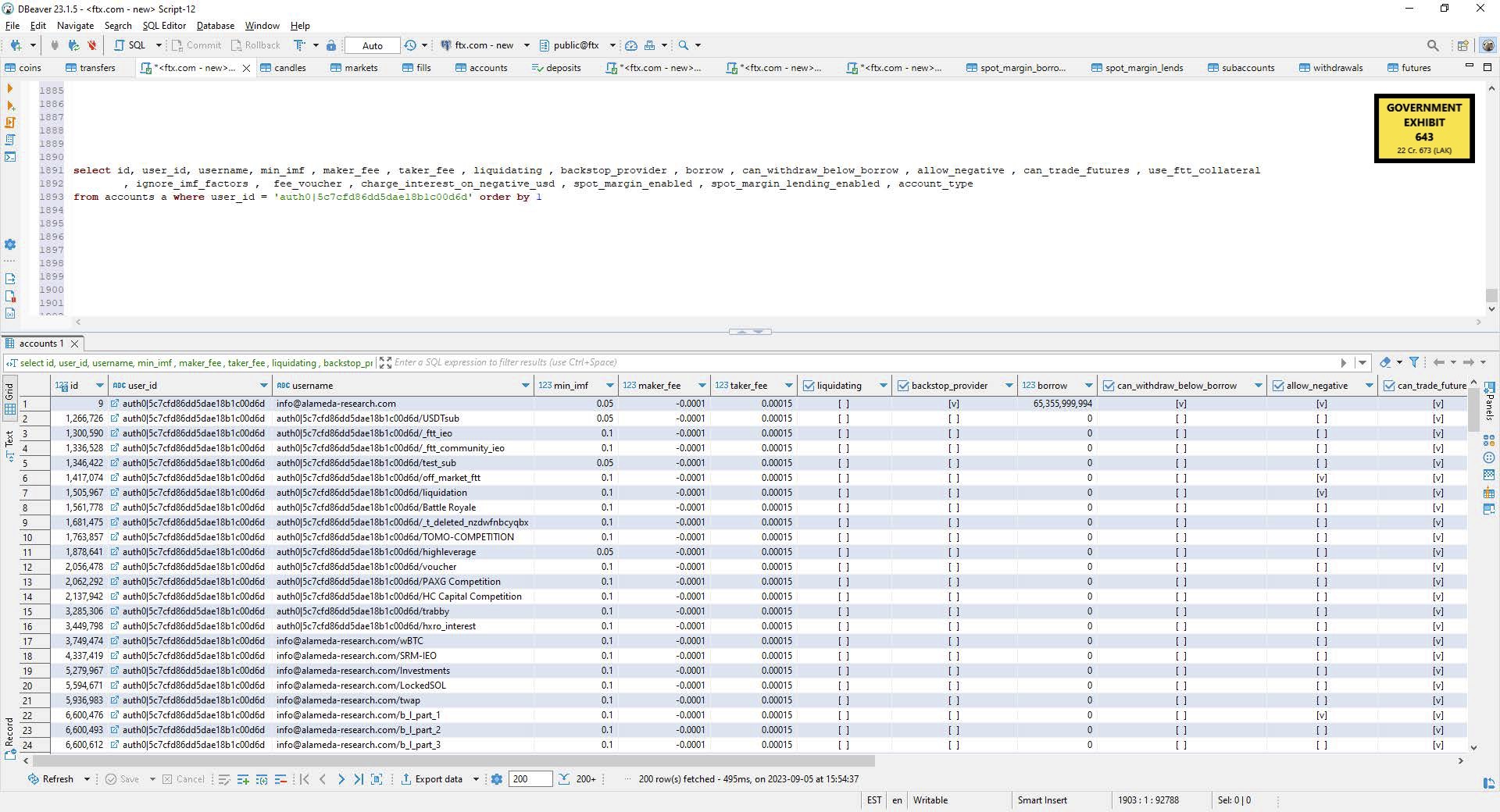 FTX联合创始人、Bankman-Fried的长期朋友加里·王作证称,Alameda Research在FTX上有650亿美元的信贷额度,这是使交易公司得以挪用FTX客户资金的方式之一。下面的展示文件显示,在“借款”栏下,Alameda的主要交易账户有能力从交易所借款高达653,559,999,994美元。这个数字设置得如此之高,以至于意味着Alameda能够从FTX进行几乎无限的提款。