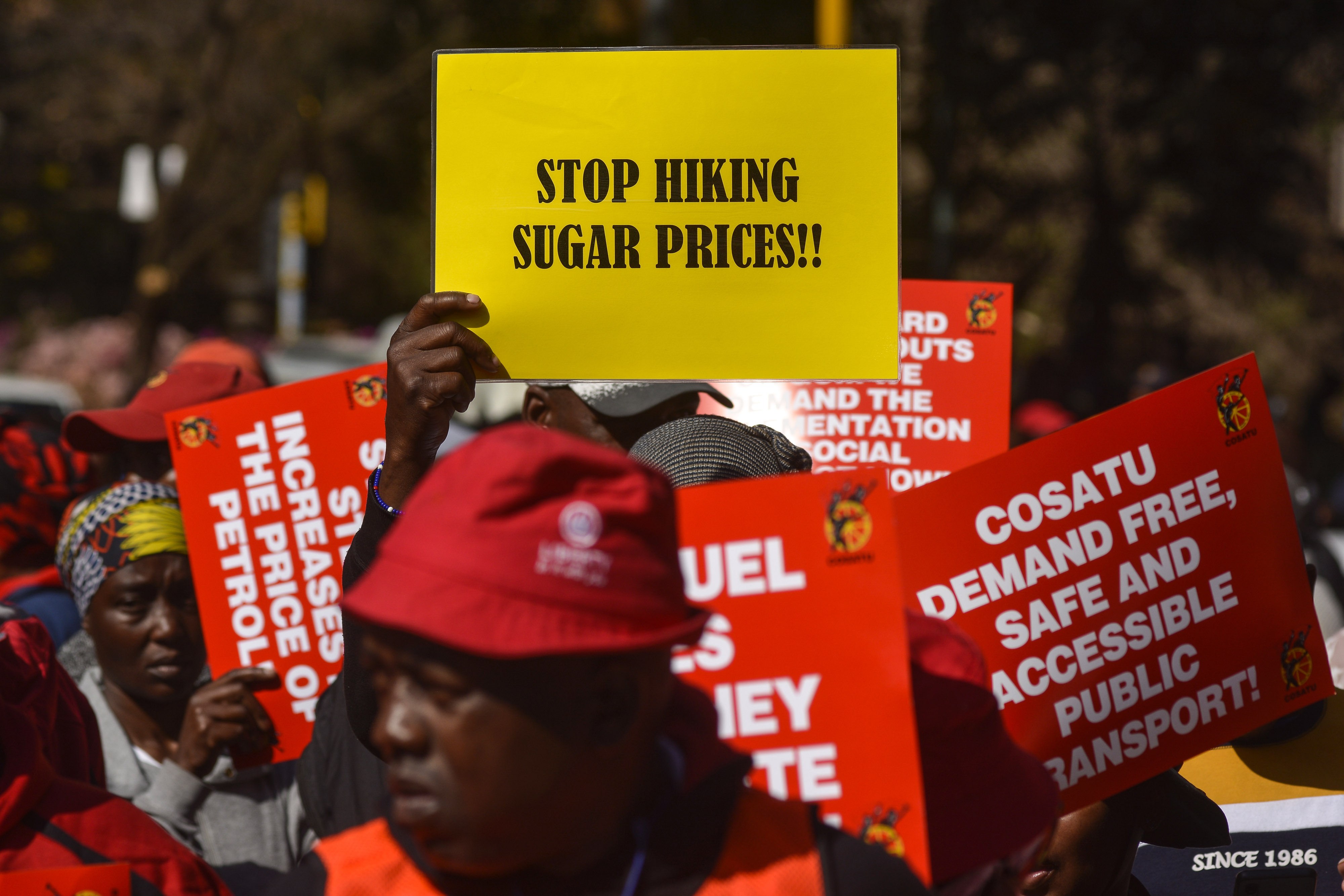 一个由南非工会联合会于2022年8月在比勒陀利亚组织的反高生活成本抗议活动。摄影师:Waldo Swiegers/Bloomberg