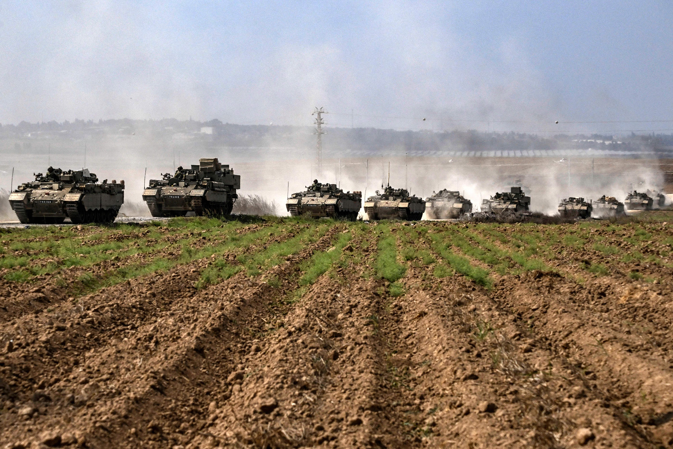以色列军队的一列军事装甲车辆在10月14日靠近以色列南部加沙边境移动。摄影师:Aris Messinis/AFP/Getty Images士兵们部署在全国各地,准备进行战争的下一阶段,“重点是进行重大地面行动”。
