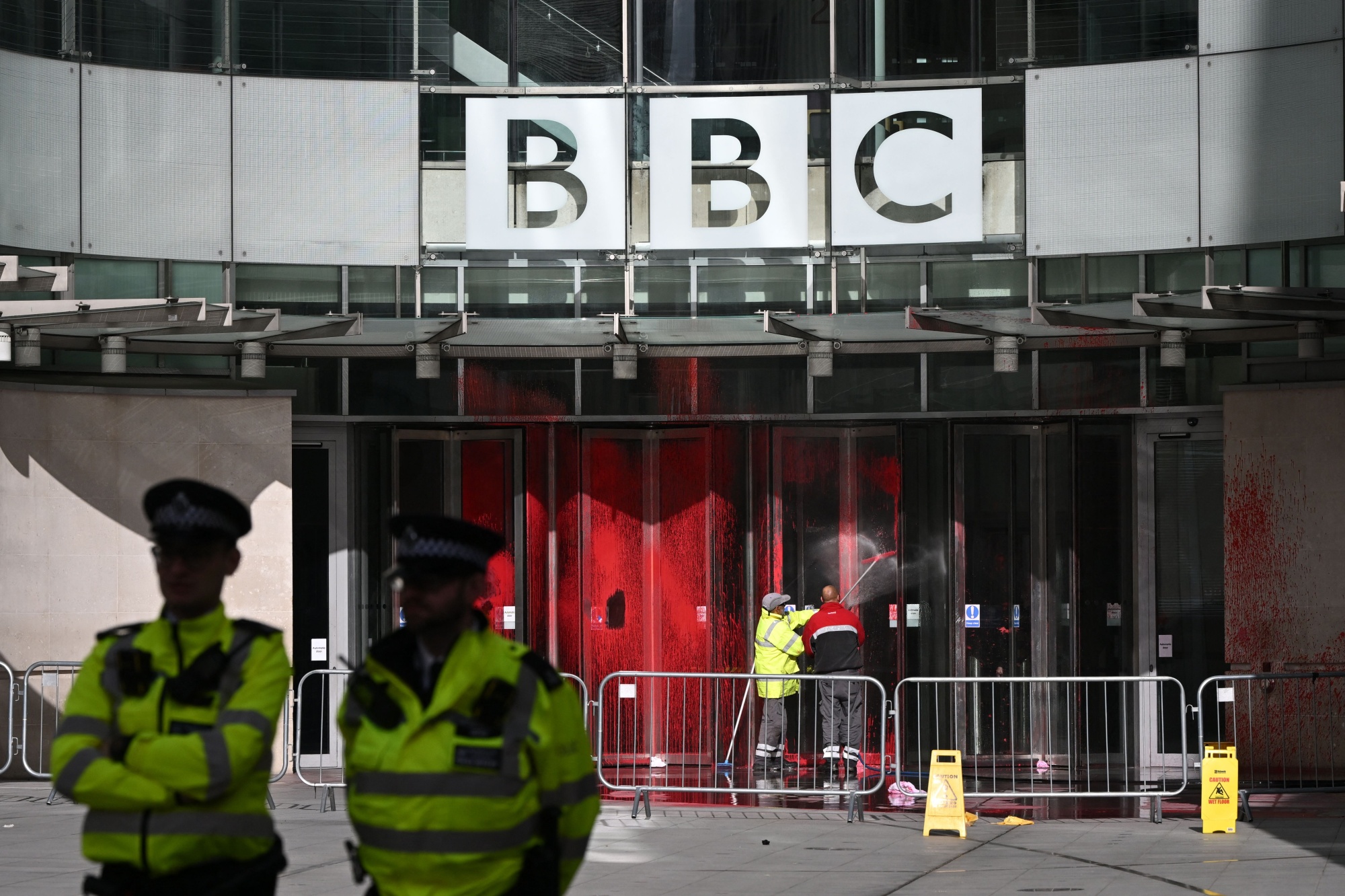 伦敦的BBC Broadcasting House总部遭到袭击,被涂上红色油漆。