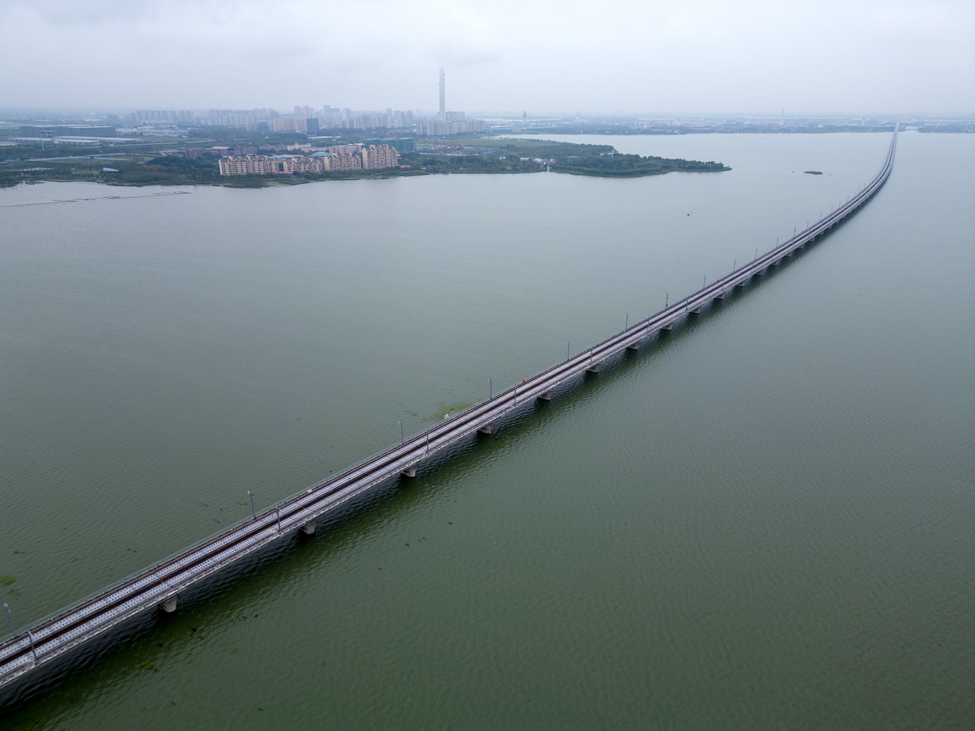 2023年9月,一座连接上海和江苏的桥横跨远荡湖。