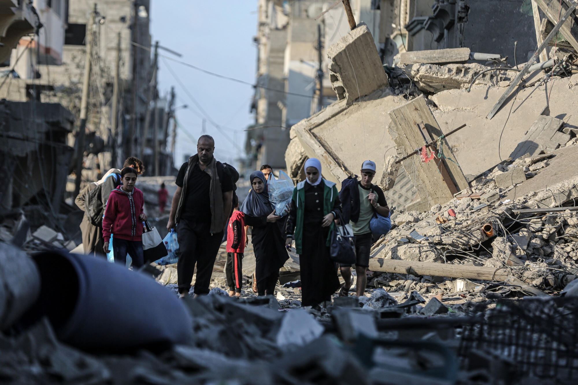10月16日,以色列对加沙市南部进行轰炸后,巴勒斯坦人逃往更安全的地区。摄影师:Ali Jadallah/Anadolu/Getty Images加沙卫生部表示,至少有1,200名巴勒斯坦人被困在以色列空袭摧毁的建筑物废墟下。