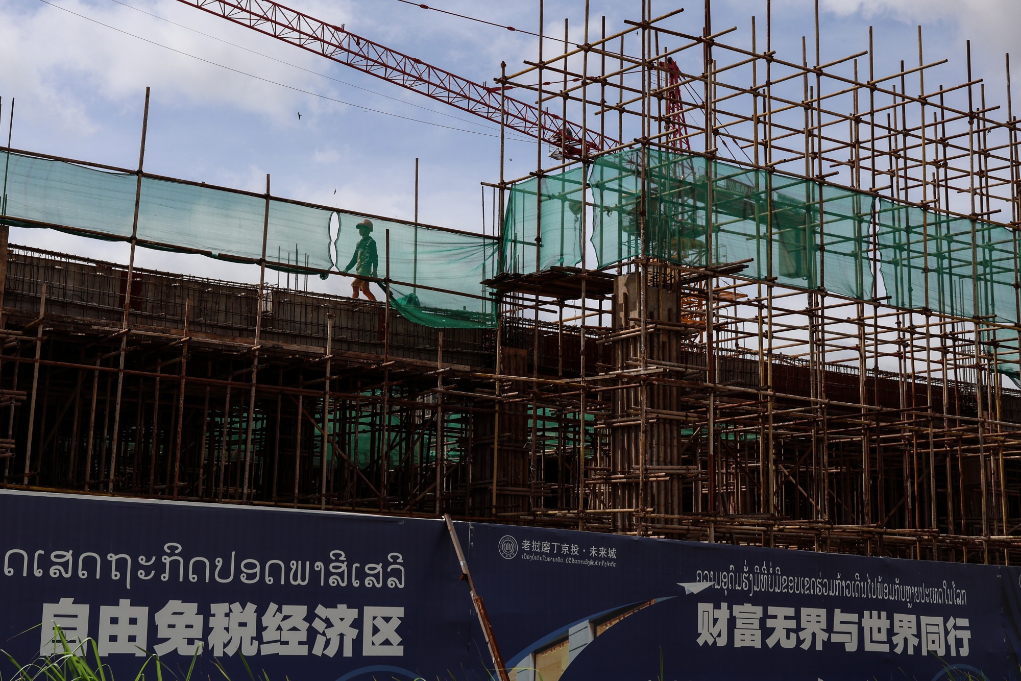 一名工人在老挝波腾靠近中老边境的一处一带一路建设工地上的脚手架上。摄影师:Valeria Mongelli/Bloomberg然而,一带一路倡议一直定义模糊,这个标签经常被用于任何与中国有友好关系的国家的项目。