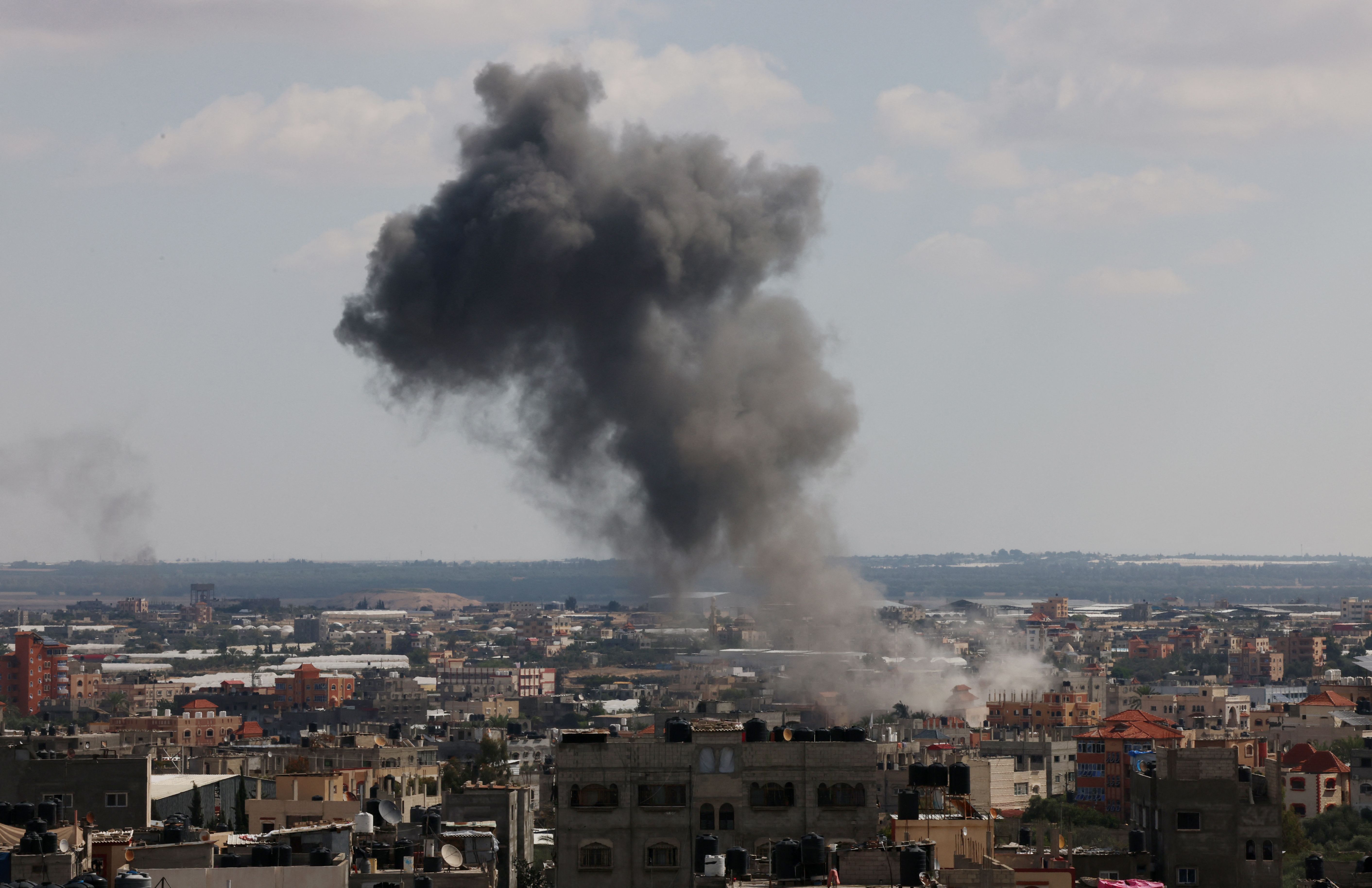 炸弹袭击后,烟雾在拉法赫难民营上空升腾,时间为10月17日。