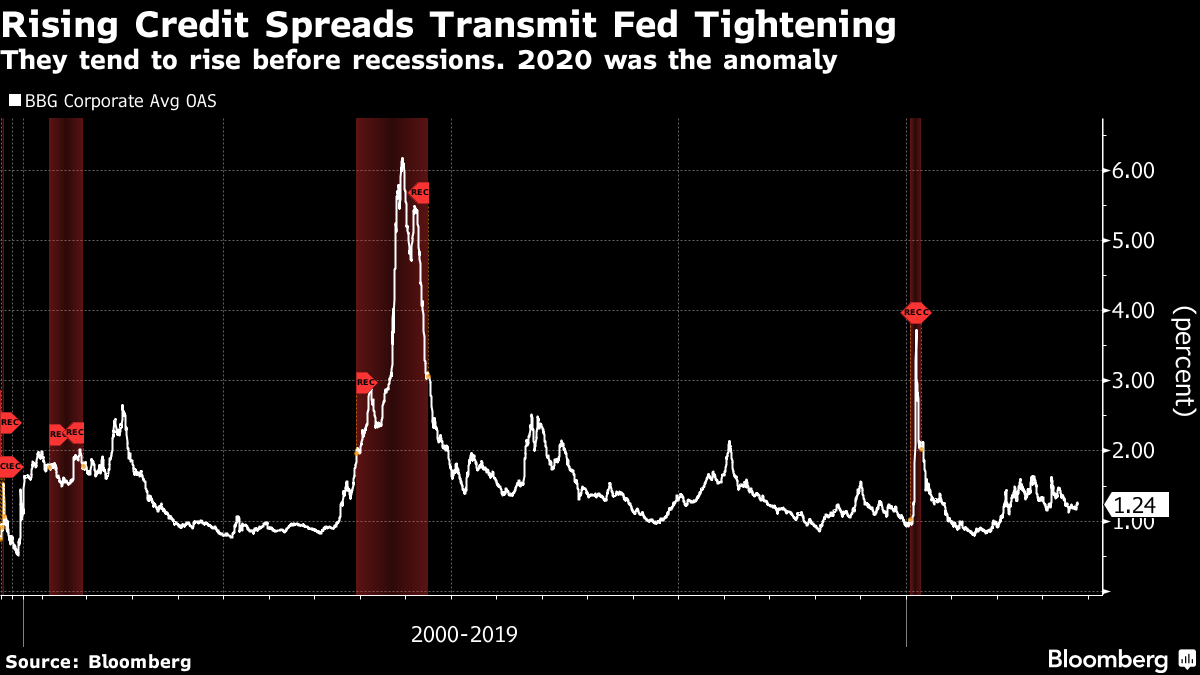 我上周说过,我们希望等到看到衰退的迹象之后再进行任何重大投资重新配置。这意味着等待信贷利差对曲线走陡做出反应。在我们看到这一点之前,更高利率的主要影响将是对尚未用尽其大流行病储蓄的上层五分之一带来更多利息收入,使他们有能力支出并维持经济向上轨道。