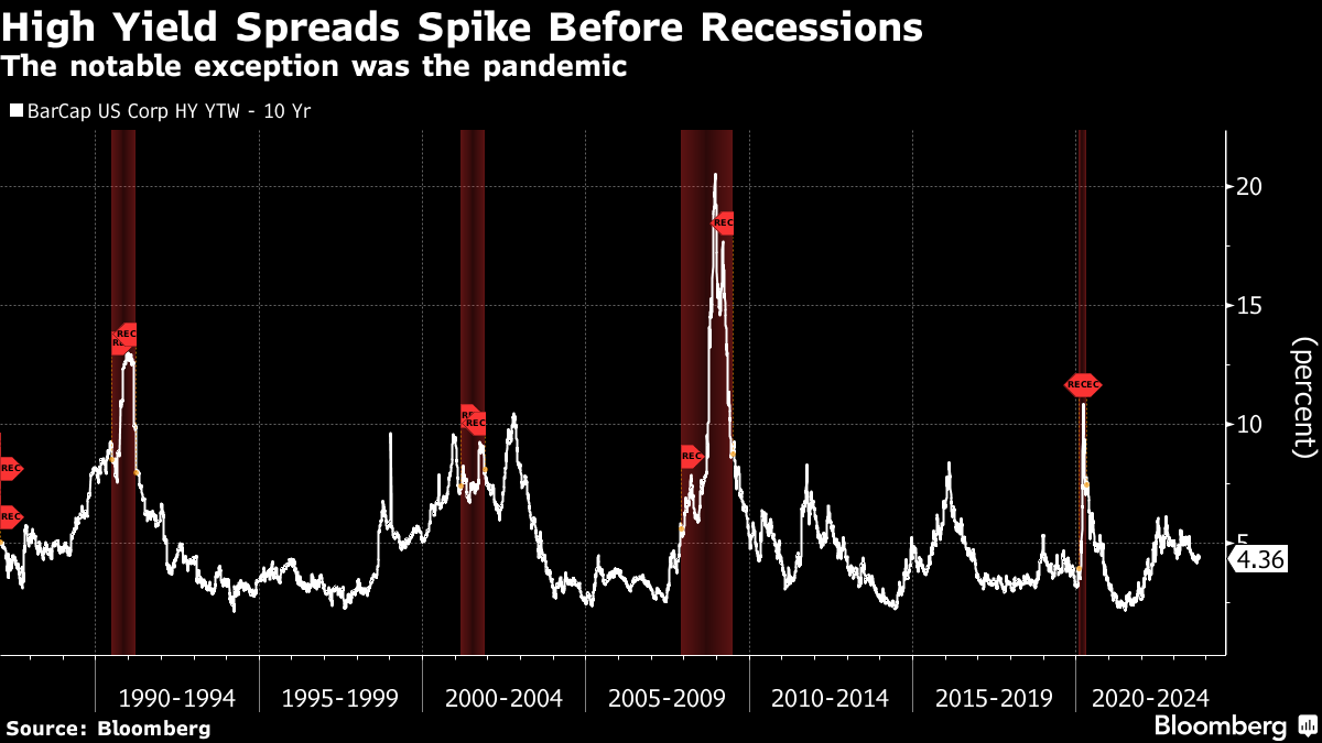 高收益差距仍然保持稳定,尽管最近长期国债收益率上升。这表明美联储可能会被迫进行更多次加息,甚至可能在2024年。