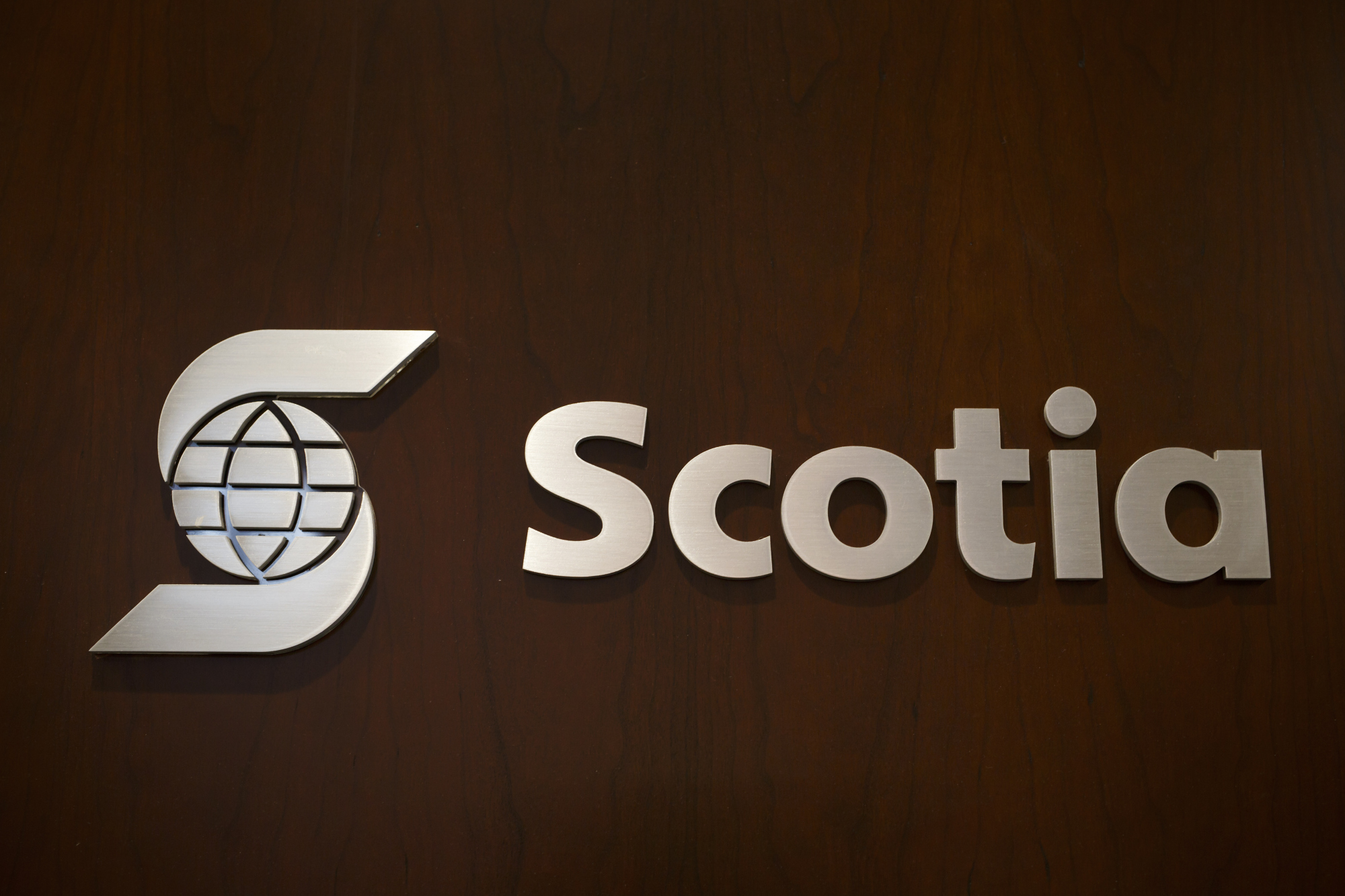 加拿大多伦多,安大略省,加拿大银行新斯科舍银行标志在斯科舍广场外展示。该银行将裁员3%,并对在中国一家银行的投资进行减记,导致第四季度盈利减少5.9亿加元(4.32亿美元)。