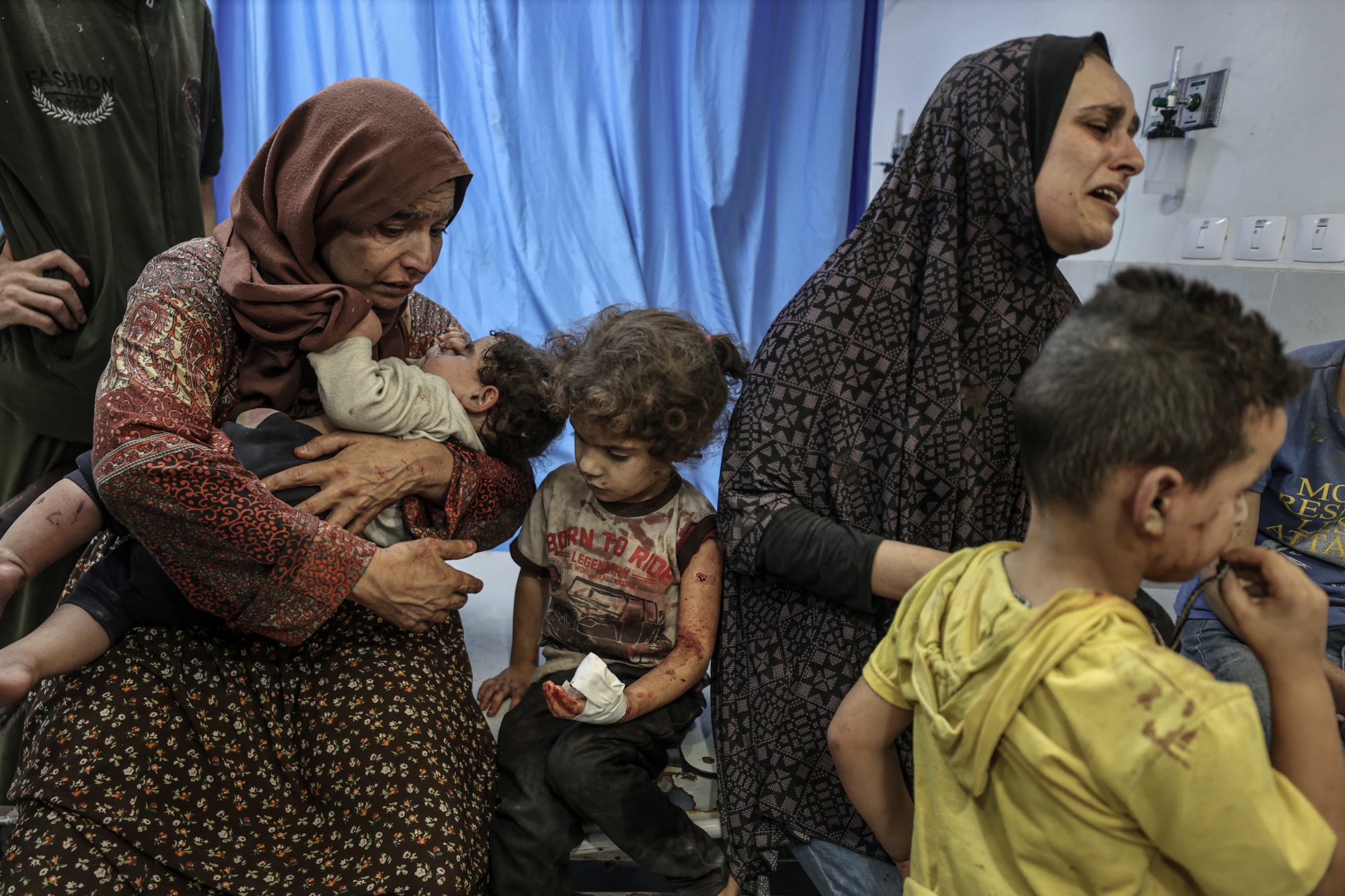2023年10月18日,受伤的人员,包括儿童,被送往加沙市的阿尔希法医院。摄影师:阿里·贾达拉/安纳多卢/盖蒂图片社### 拜登表示以色列同意向加沙提供援助(下午5:17)