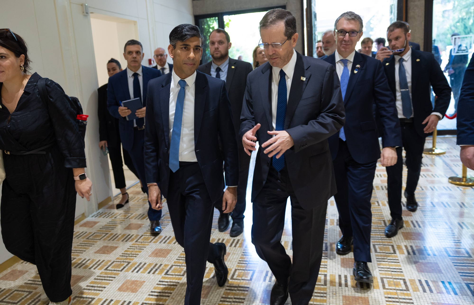 里希·苏纳克(Rishi Sunak)和以撒·赫尔佐格(Isaac Herzog)于10月19日。摄影师:西蒙·沃克(Simon Walker)/10号唐宁街“我们将做到这一点,因为在英国,和平机会的丧失或社区紧张加剧的代价太高了,”他告诉Times Radio。