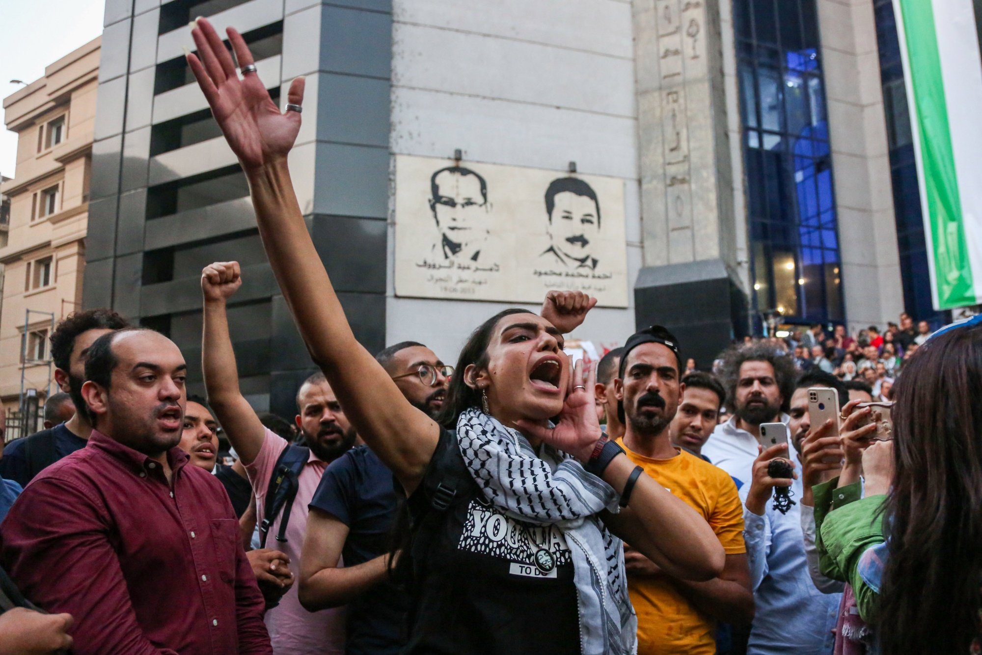 10月18日开罗的亲巴勒斯坦示威活动。摄影师:Islam Safwat/Bloomberg