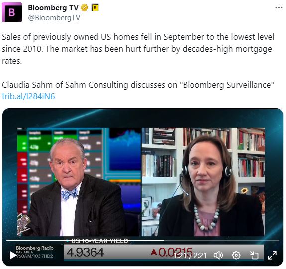 美国二手房销售在9月份下降到2010年以来的最低水平,在长期高抵押贷款利率的压力下,房屋可负担性进一步恶化。