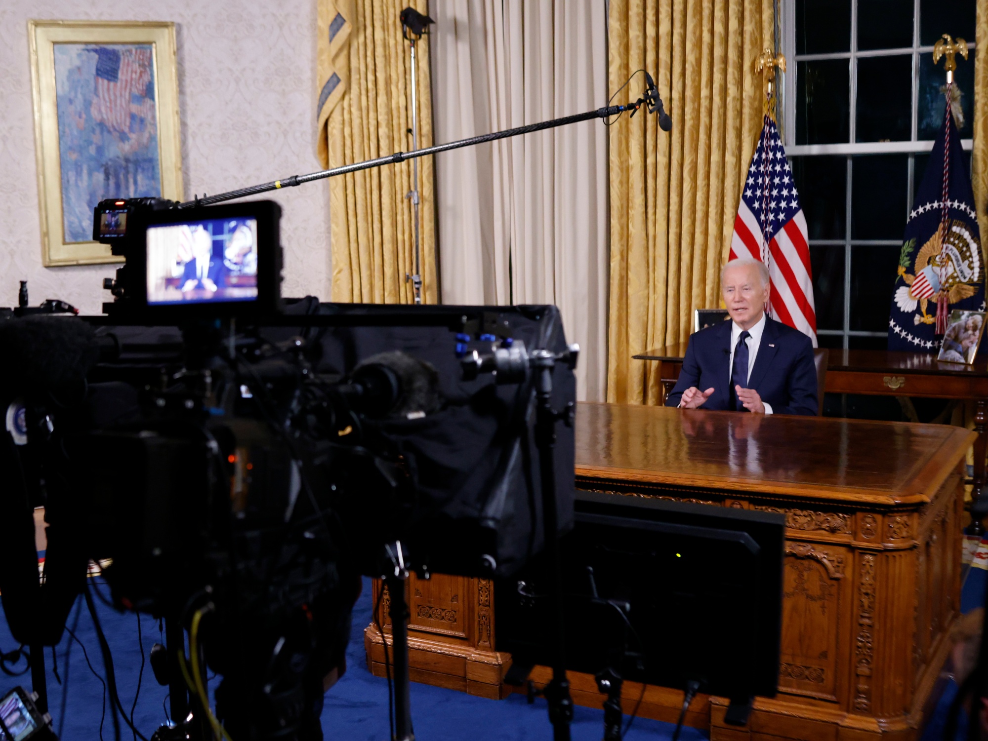 大约15分钟的椭圆形办公室讲话在正式白宫要求国会提供约$1000亿的资源支持以色列、乌克兰、台湾和美国南部边境之前进行。拜登认为支持乌克兰和以色列分别对抗俄罗斯和激进组织在“美国国家安全方面至关重要。”