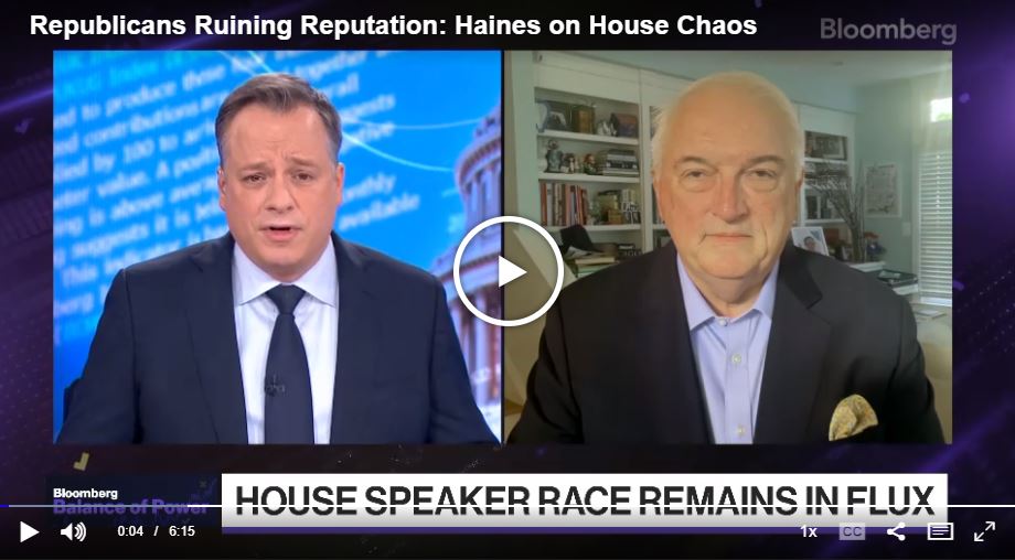 今天在彭博电视台的权力平衡节目中,主持人安玛丽·霍登和乔·马修采访了前美国国务院中东谈判代表亚伦·大卫·米勒,谈论以色列与哈马斯的战争。在昨天的节目中,Pangaea Policy创始人特里·海恩斯讨论了选举众议院议长的持续斗争如何影响市场并影响共和党。