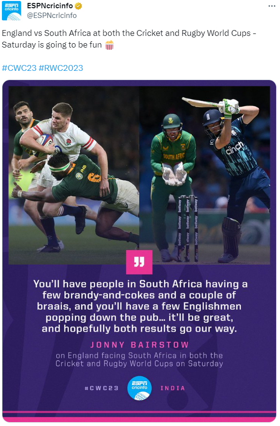 南非是非洲唯一一支仍留在橄榄球和板球世界杯中的国家,其队伍将在周六分别与英格兰对阵。该国从未赢得过全球板球锦标赛,但有机会增加其三次橄榄球冠军(与新西兰并列)的记录,包括2019年的最新一届。点击这里看一个轻松的视角,了解印度举办的板球盛会第二周的赢家和输家。