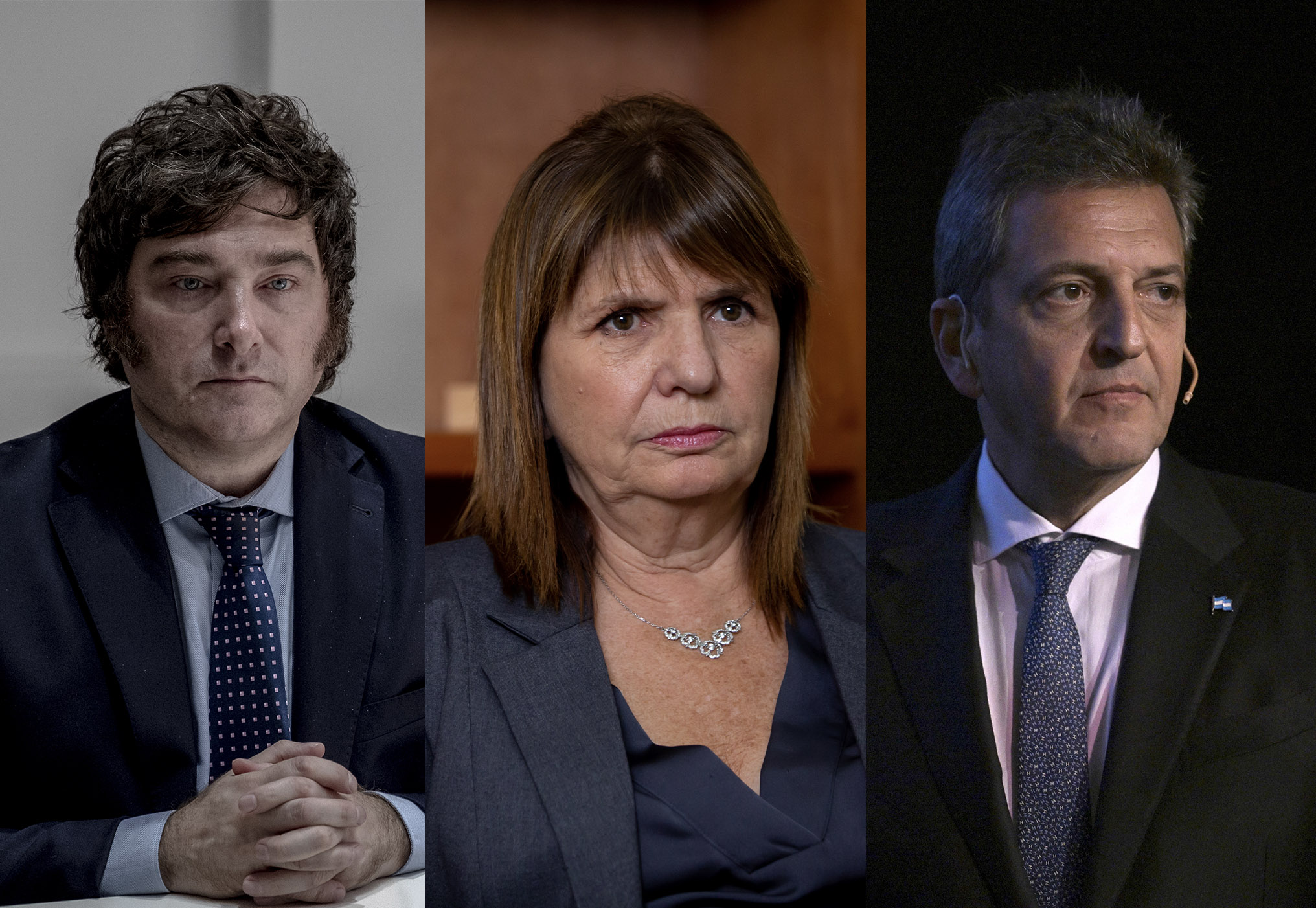 Javier Milei, Patricia Bullrich 和 Sergio Massa摄影师:Erica Canepa,Maria Amasanti/Bloomberg,Juan Mabromata/AFP/Getty Images