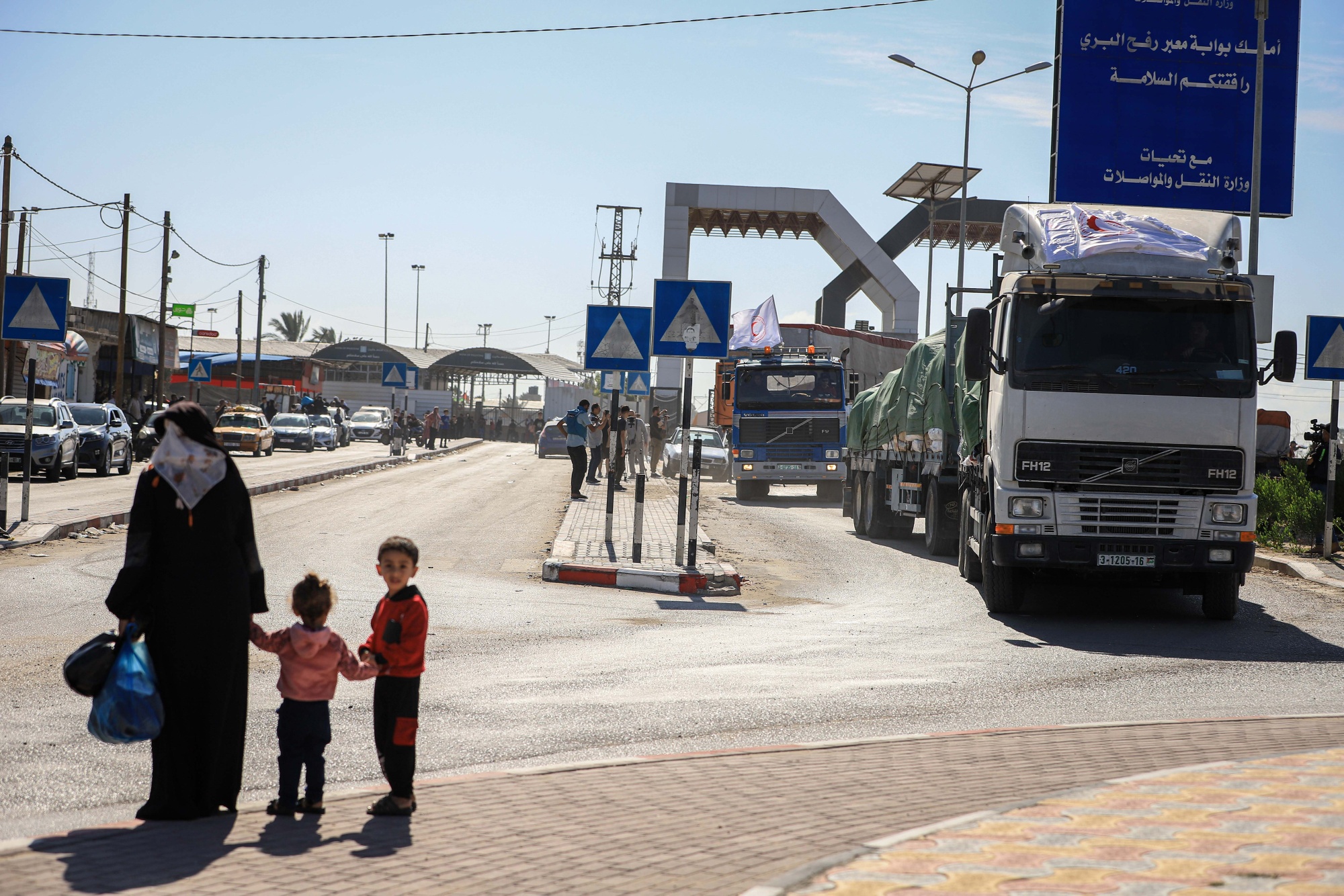 首批携带人道主义援助的卡车于10月21日从埃及驶入加沙地带的拉法赫。摄影师:Ahmad Salem/Bloomberg以色列官员表示,他们需要传达两种截然相反的信息:一是向其他伊朗支持的组织,比如真主党,表明以色列在必要时可以像他们一样行动,并迫使敌人付出惨重代价。另一种信息是向华盛顿和其他西方首都表明,以色列在人命尊重方面与他们分享价值观,不像伊斯兰武装分子。
