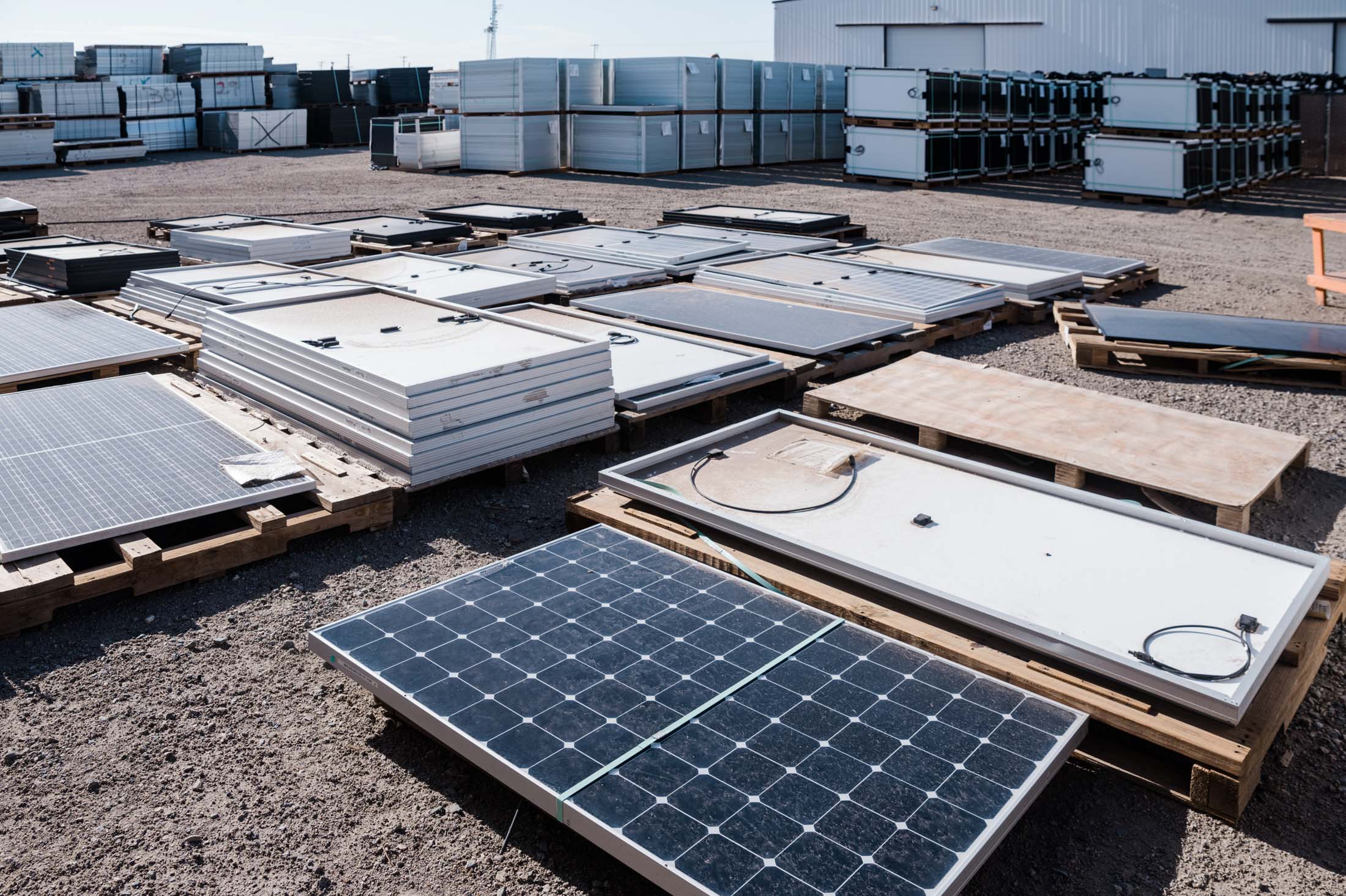 每天有多达10辆卡车驶过We Recycle Solar设施的大门,每辆卡车装载400至800块面板。摄影师:Caitlin O’Hara/Bloomberg“这是一个很棒的商业模式。我们不会用尽供应,” Saghei说。该公司已经处理了50万多块面板,他预计到年底这个数字将达到100万。“这个问题每年都在变得越来越大。”