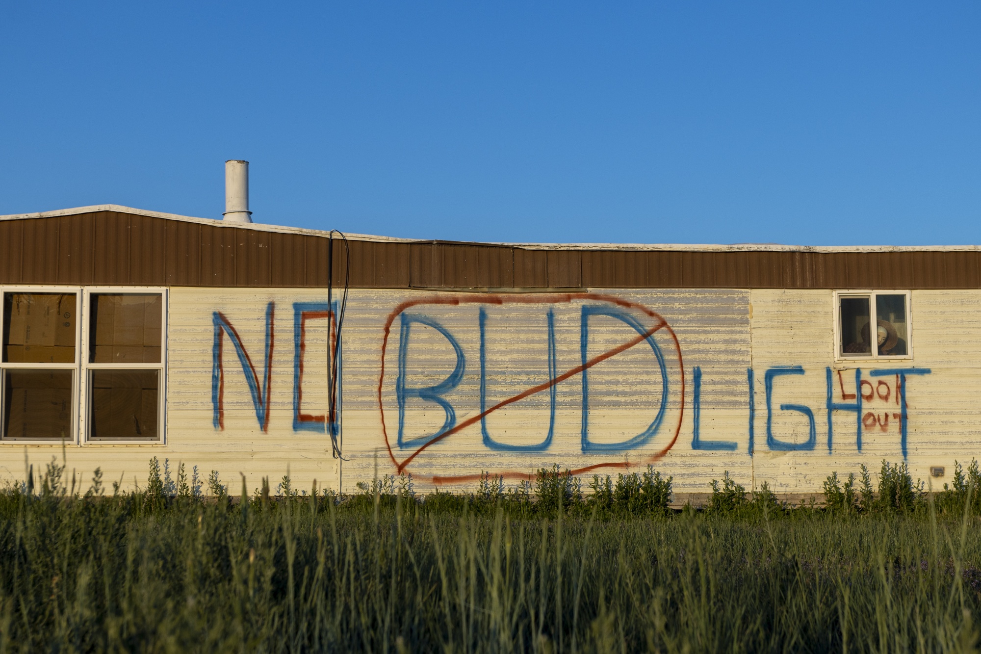 在爱达荷州阿科市一栋房屋上的反白啤酒涂鸦。