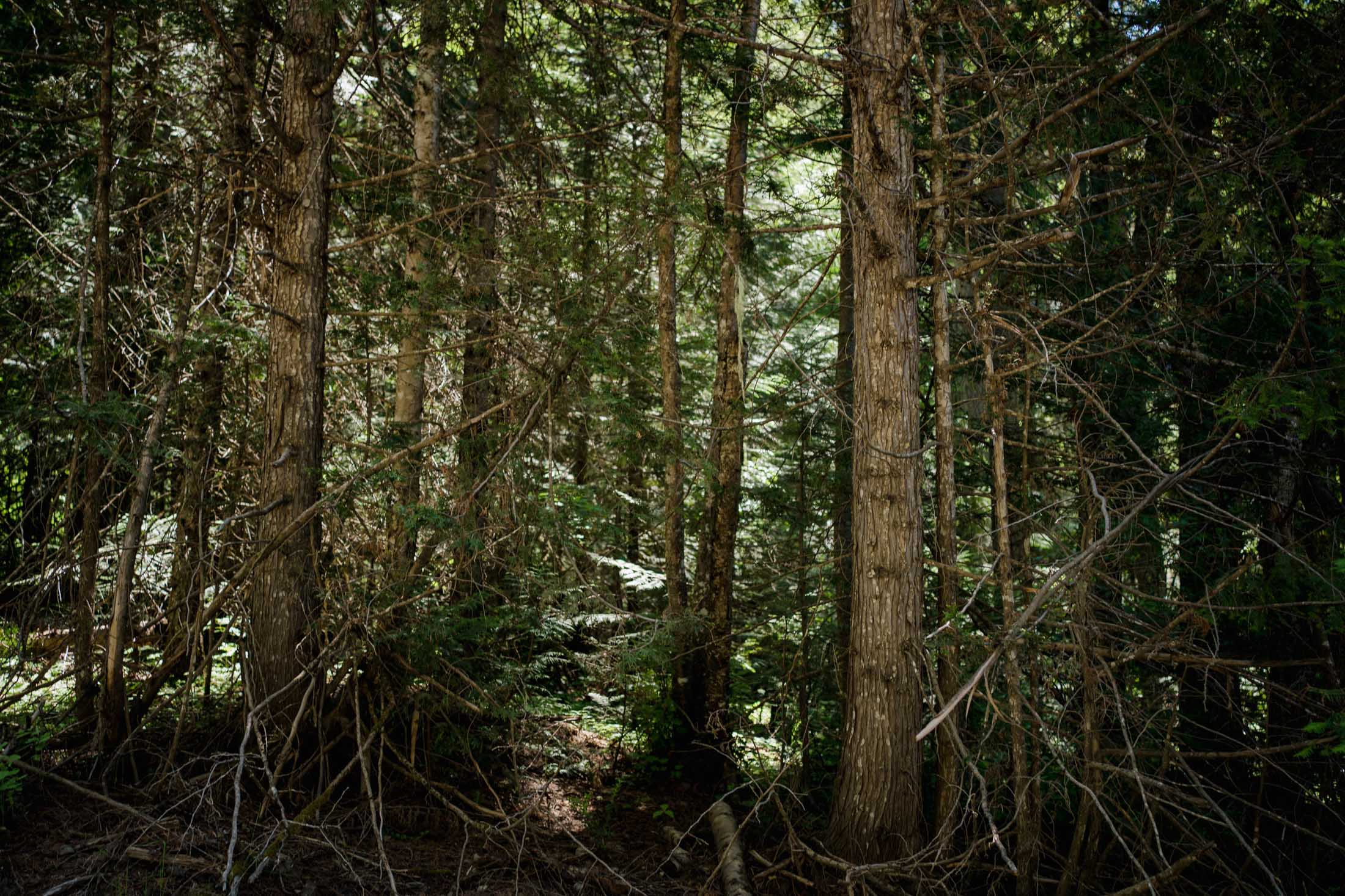 在华盛顿州东部的科尔维尔国家森林深处,Russ Vaagen指着已经有选择性稀疏和未稀疏的树木之间的界线。一侧光线充足,点缀着草地;另一侧浓密而黑暗,充满了为水和生命而进行达尔文式竞争的树木。
