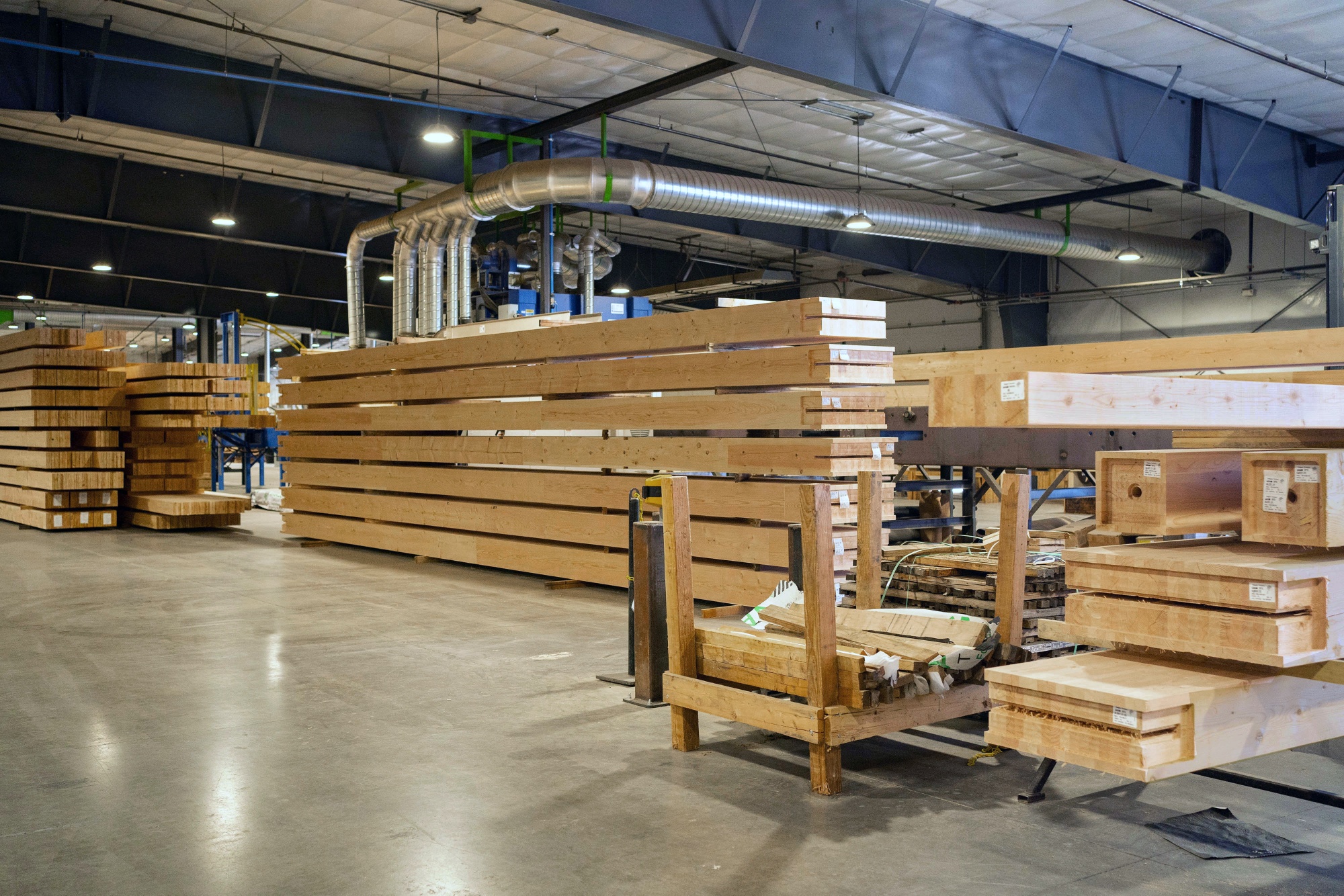 不久之后,他出售了家族企业的股份,并利用这笔钱购买了昂贵的设备,开始了自己的大型木材生产。其低矮、光线充足的办公室与一个占地7万平方英尺的工厂相连,共雇佣约100人。该工厂生产胶合木梁,用作结构支撑,以及精确切割的CLT板,用于地板和墙壁。