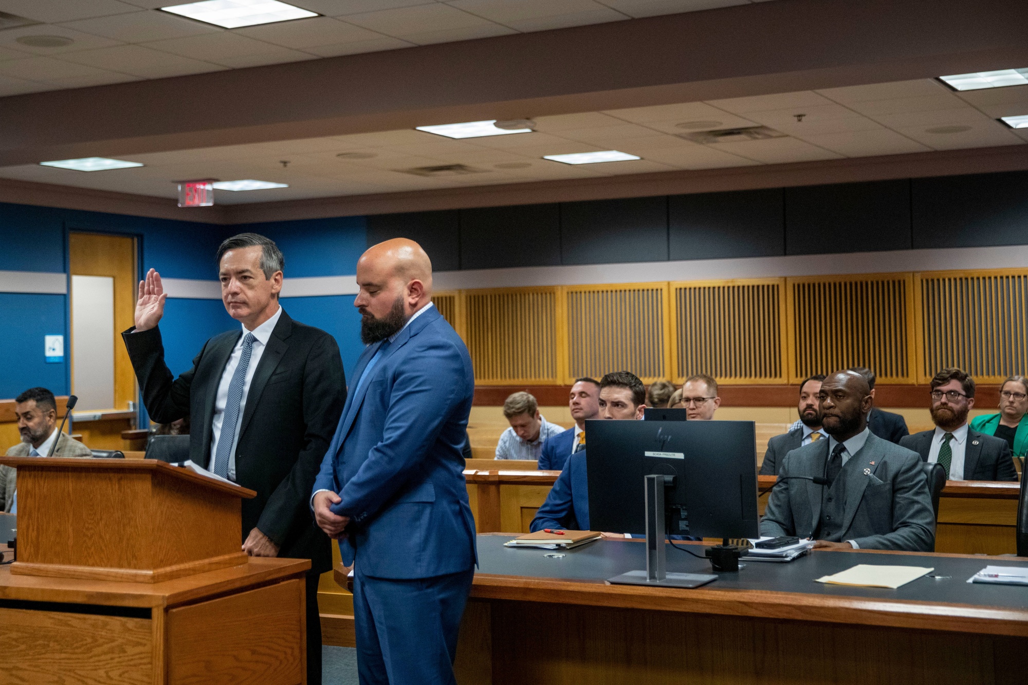 肯尼斯·切斯布罗和他的律师斯科特·格鲁布曼于10月2日在富尔顿县法院出庭。摄影师:阿莉莎·波因特/盖蒂图片社过去一周,乔治亚州2020年选举串谋案中被控的律师们三人认罪,显示检察官正逐渐逼近唐纳德·特朗普及其选举后顾问内部圈子,为审判做准备。