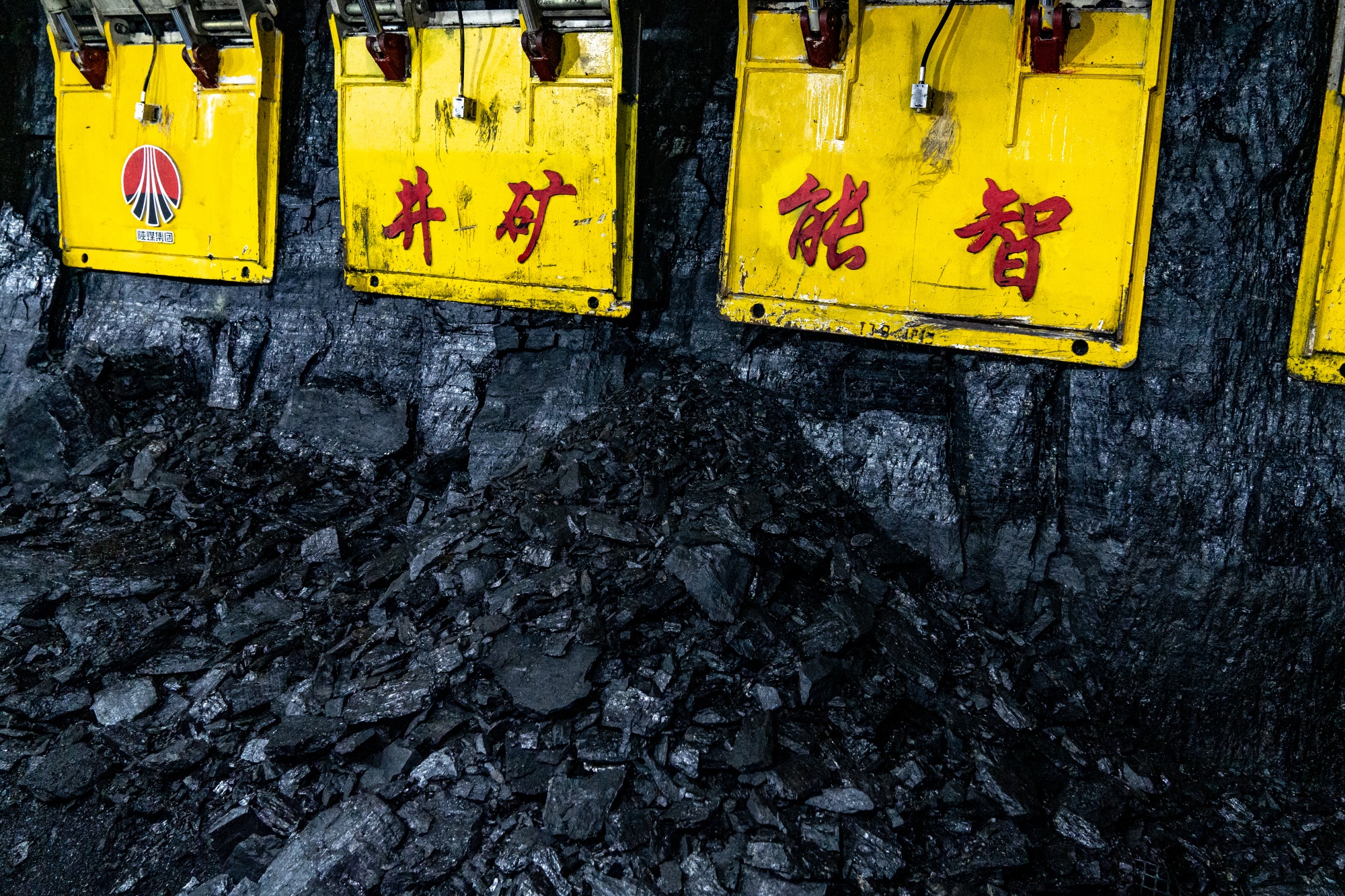 陕西煤炭和化工集团股份有限公司小宝当煤矿的煤炭沿着煤矿的脸部。