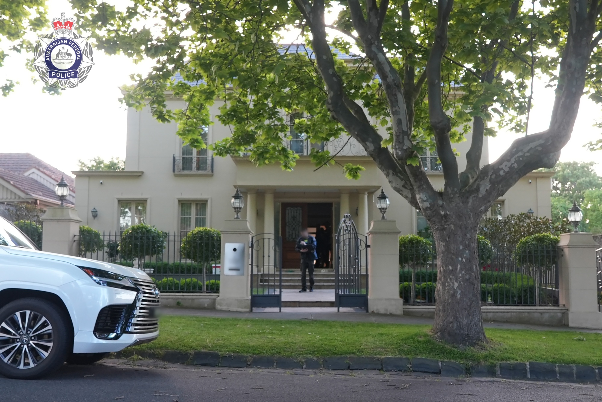 澳大利亚联邦警察在库区搜查一处房屋。来源:澳大利亚联邦警察“我们指控他们过着奢华的生活,去澳大利亚最奢侈的餐厅用餐,喝价值数万美元的葡萄酒和清酒,乘坐私人飞机旅行,驾驶价值40万澳元的车辆,住在昂贵的房屋中,其中一栋价值超过1000万澳元,”澳大利亚联邦警察东部指挥部助理专员斯蒂芬·达梅托说。