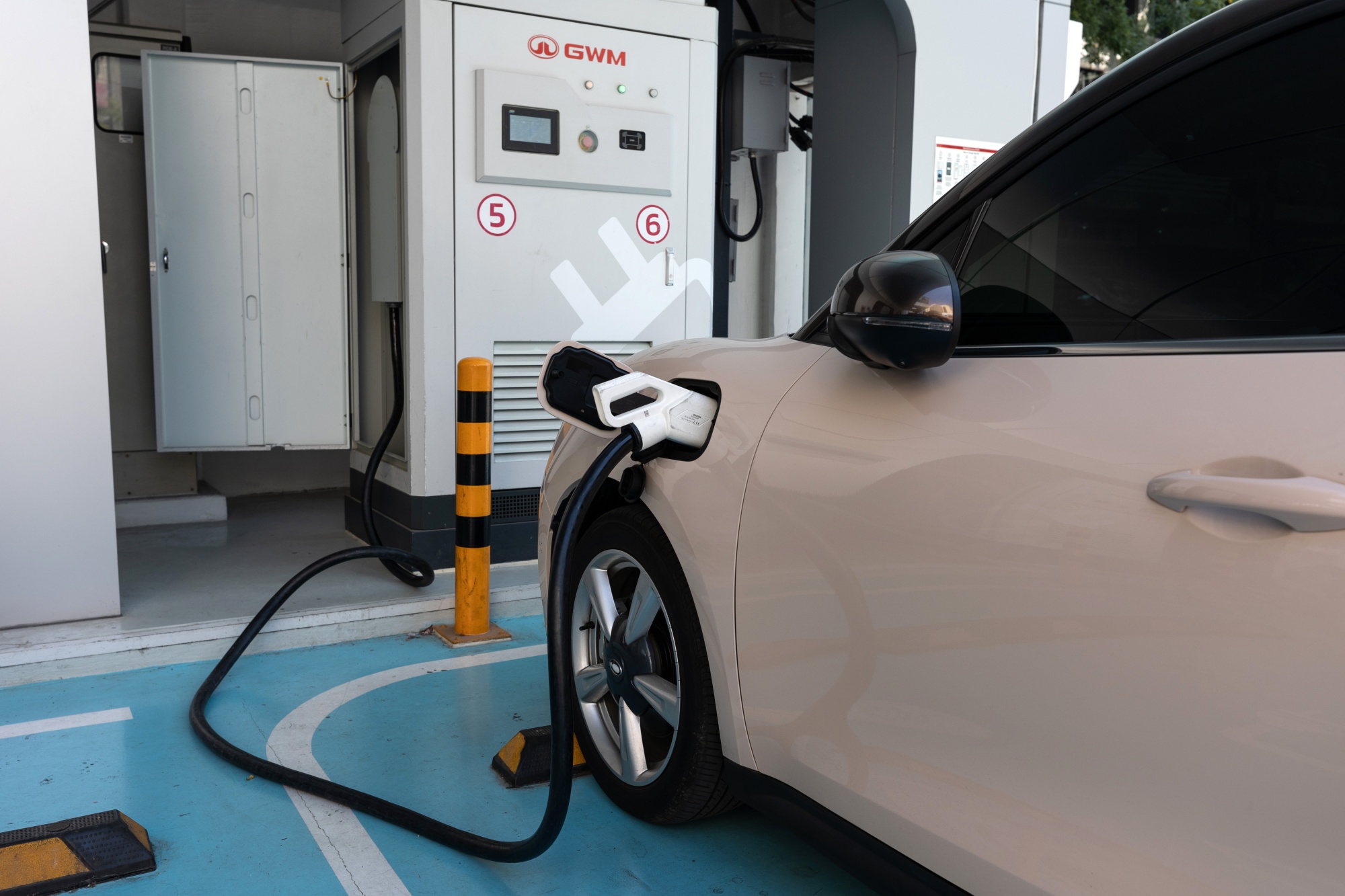 长城汽车的Ora Good Cat电动汽车在曼谷公司的充电站充电。
