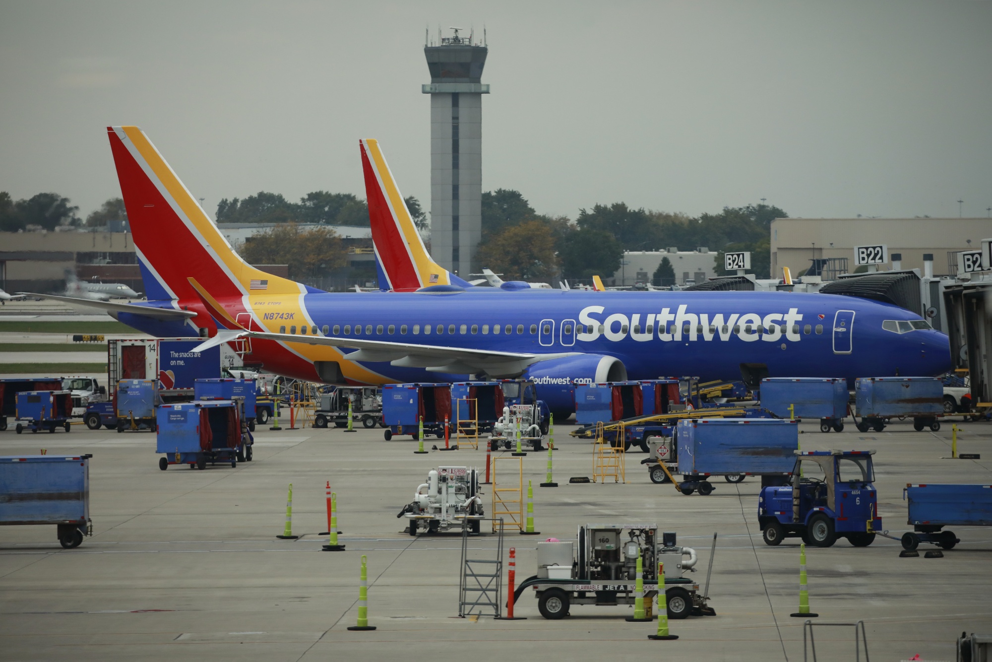 美国西南航空公司波音737客机在美国伊利诺伊州芝加哥。