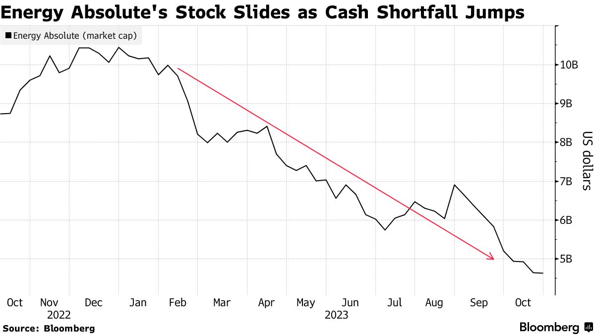 “人们对Energy Absolute的财务状况有一些担忧,”新加坡星展维加斯证券(泰国)Pcl的分析师Duladeth Bik表示。“持续的负面经营现金流将进一步增加公司的杠杆,导致更多借款。”