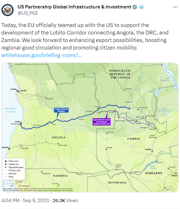 欧盟和美国签署了一项协议,旨在通过安哥拉开发一条连接资源丰富的刚果民主共和国和赞比亚通往大西洋的走廊,以便与中国竞争获取关键矿产。欧盟和美国上个月表示,第一步将包括对通往洛比托港的新铁路扩建进行可行性研究。该协议是在布鲁塞尔举行的峰会上达成的,旨在推出全球门户计划,该计划是欧盟3000亿欧元基础设施计划的一部分,旨在与中国的“一带一路”倡议竞争。